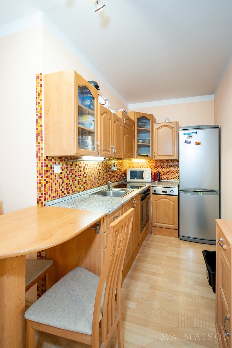 Nabízíme dlouhodobý pronájem bytu o dispozici 2+kk a podlahové ploše 46,7m2, s vlastním parkovacím stáním a sklepem v lokalitě Praha Trója. Byt se nachází v 3. nadzemním podlaží budovy s výtahem. Byt je kompletně zařízen a sestává ze vstupní předsíně, koupelny s vanou a toaletou, obývací části a ložnice. Součástí obývací místnosti je kuchyňská linka s barovým stolem, ke kterému patří dvě jídelní židle. Kuchyňská linka je vybavená lednicí s mrazákem, varnou deskou, troubou, digestoří, myčkou a mikrovlnnou troubou. V obývací části se nachází gauč s dvěmi křesílky a konferenčním stolkem. Součástí vybavení je také TV a TV stolek, poličky a skříňky. Taktéž se zde nachází pracovní stůl s dvěmi židlemi. Ložnice je vybavená manželskou postelí vč. matrací a prostornou šatní skříní. Koupelna s vanou, toaletou a pračkou. V předsíni se dále nachází další prostorná šatní skříň, která nabízí spoustu úložného prostoru. Dále pak botník a věšák. Součástí bytu je také sklepní kóje a parkovací garážové stání. Je již zahrnuto v ceně. Domovní recepce 24/7, možnost přebírání pošty. Vstup do budovy pouze na čip. Kompletní občanská vybavenost, v docházkové vzdálenosti naleznete nákupní centrum Krakov, OC Odra, Botanickou zahradu, pražskou ZOO, Čimický háj, velmi příjemné a klidné okolí plné zeleně. Metro C Kobylisy pár stanic autobusem, jehož stanice se nachází přímo před domem. Měsíční náklady bytu činí 3.600 Kč včetně pojištění domácnosti a odpovědnosti. El. energie se převádí na nájemníka. O převod se kompletně postaráme. Dodavatelem je společnost Innogy. Odhad měsíčních záloh cca 1.100 Kč / měsíc. Vratná kauce: 30.000 Kč Provize RK: 1x měsíční nájem + 21 % DPH V rámci procesu rezervace provádíme lustraci v bankovních a nebankovních registrech, solus apod. Nulový záznam podmínkou. K nastěhování od 1.12.2025