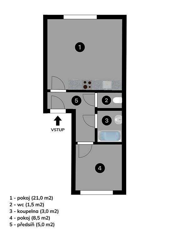 Nabízíme k dlouhodobému pronájmu byt 2+kk ve 3.NP, s celkovou plochou cca 39 m2, v klidné, jednosměrné ulici Pastrnkova v Židenicích. Byt prošel celkovou rekonstrukcí, nová koupelna, toaleta, kuchyňský kout, vinylové podlahy. Vytápění zajišťuje plynový kotel společný pro tři byty, ohřev vody elektrickým bojlerem. Z předsíně jsou samostatné vstupy do místností a koupelny s vanou. Zvlášť umístěná je toaleta. Pokoj s kuchyňským koutem je situovaný východním směrem do vnitrobloku, další pokoj míří do ulice směrem na západ. Byt se pronajímá nezařízený, pouze s kuchyňskou linkou, sporákem se sklokeramickou varnou deskou a elektrickou troubou. Umístění bytového domu je v jednosměrné ulici, která vede podél řeky Svitavy. Jeho poloha je v docházkové vzdálenosti do centra, v blízkosti jsou zastávky MHD, nákupní středisko Albert, Vojenská nemocnice a další občanské vybavení, včetně možnosti využít cyklostezku, která kopíruje tok řeky Svitavy. Majitel má požadavek, aby se v bytě nekouřilo. Nájem je 16.500 Kč, služby 3.475 Kč/1 osoba, 4.150 Kč/2 osoby, vratná kauce ve výši 16.500 Kč, k nastěhování od 1.10. 2025. Prohlídky možné po domluvě s makléřem. Neváhejte zavolat ještě dnes.