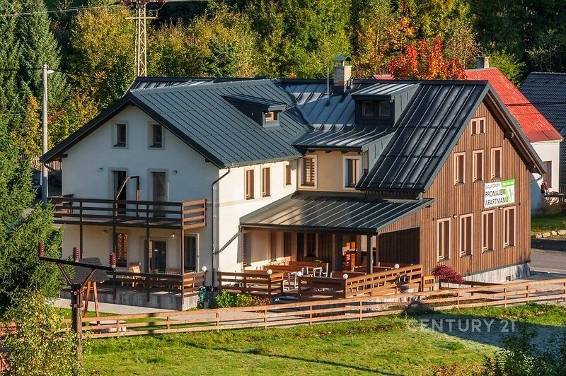 Nabízíme k dlouhodobému pronájmu mezonetový apartmán o velikosti 36 m² a dispozici 2+kk. Apartmán v nově zrekonstruovaném objektu je plně vybaven vším, co potřebujete k příjemnému trávení volných dní na horách. Nájemce apartmánu může využívat mnoha služeb a prostor společných částí horské chaty, jako například prostornou jídelnu s krbem, knihovnu, sušárnu na lyžařské boty, lyžárnu, kolárnu a také zastřešené venkovní posezení s krbem, dětské hřiště apod. Chata se nachází na kraji obce Bedřichov, skibusem se dostanete na stadion za 4 minuty, zastávka je přímo u chaty. V bezprostřední blízkosti chaty je malý lyžařský areál. Parkování u chaty bez problémů i v zimě.