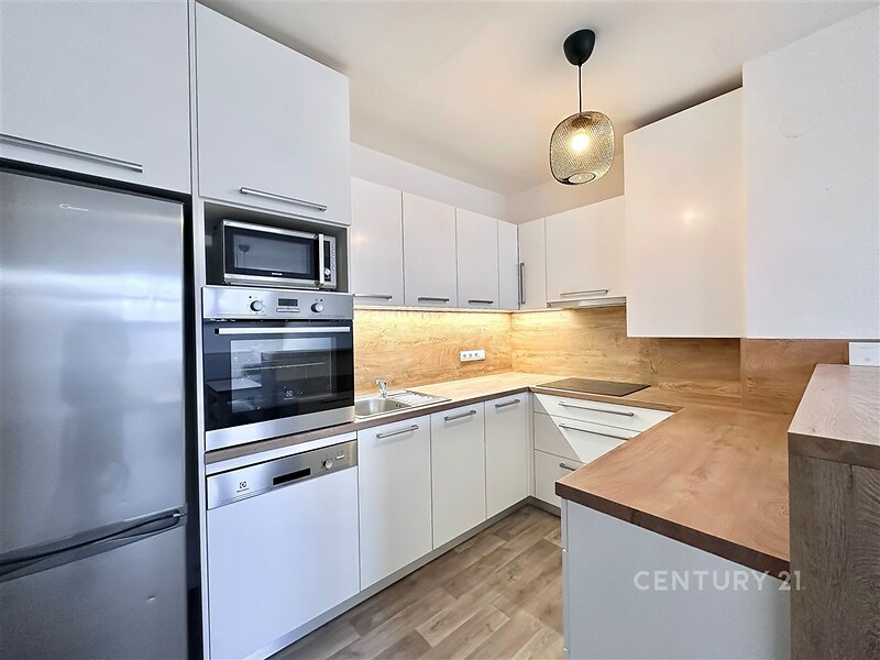 Nabízíme k podnájmu nadstandardně řešený, moderní podkrovní byt na prestižní adrese náměstí Míru 1551/6 v Kroměříži. Tento prostor v sobě harmonicky snoubí minimalistický design, hřejivé dřevěné dekory a neopakovatelnou atmosféru bydlení pod střechou s výhledem na nebe. Čím vás tento byt okouzlí? Moderní design & Čistota: Interiér laděný do světlých tónů v kombinaci s přírodním dekorem dřeva dodává bytu pocit vzdušnosti, klidu a skutečného tepla domova. Špičková kuchyně: Designová bílá linka s vestavnými spotřebiči (trouba, mikrovlnná trouba, indukční deska, myčka) disponuje elegantním barovým pultem, který přirozeně propojuje varnou zónu s obývacím prostorem. Světlo a výhledy: Velkorysá střešní okna zaplavují interiér přirozeným denním světlem a v noci nabízejí romantický výhled na noční oblohu přímo z pohodlí a soukromí domova. Stylová ložnice: Prostorná ložnice s novým nábytkem nabízí dostatek úložného prostoru, aniž by narušila čisté linie a eleganci celého interiéru. Exkluzivní lokalita: Bydlení přímo na náměstí znamená mít historii, kavárny a veškerou občanskou vybavenost na dosah ruky, a přitom si užívat naprostý klid v nejvyšším patře domu. Atmosféra, která vás pohltí Tento byt má výjimečné kouzlo, které pocítíte hned při vstupu. Kombinace citlivě řešených zkosených stěn, moderního osvětlení a kvalitních podlah vytváří jedinečný, reprezentativní a zároveň útulný prostor pro každodenní relaxaci. K bytu náleží prostorná komora situovaná na stejném patře, hned vedle vstupu do bytu – ideální pro věci, které chcete mít neustále po ruce. Součástí podnájmu je také velkorysý sklep, který snadno pojme veškeré sportovní vybavení a osobní věci, aniž byste museli slevovat z estetiky svého nového domova. Byt je připraven k okamžitému nastěhování. Budu se na Vás těšit na prohlídce.