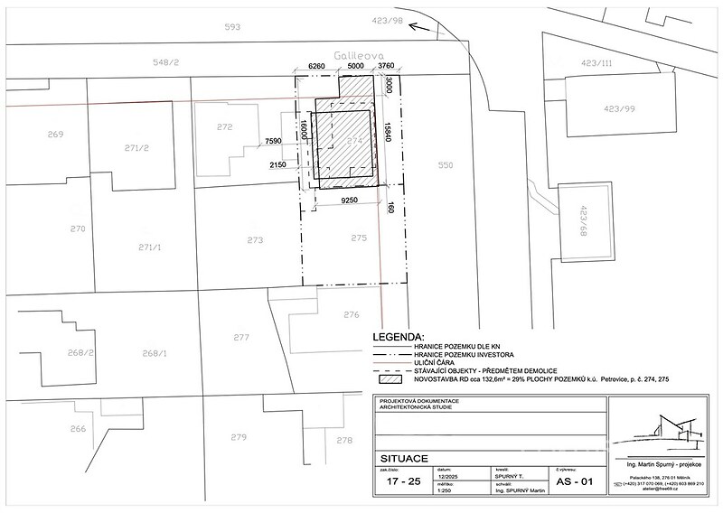 Nabízíme k prodeji atraktivní pozemek se stávajícím rodinným domem 3+1 v ulici Galvaniho v klidné části Prahy – Petrovice. Nemovitost představuje výbornou příležitost pro ty, kteří hledají místo s potenciálem vytvořit si bydlení přesně podle svých představ – ať už formou kompletní rekonstrukce stávajícího domu, nebo demolicí a výstavbou zcela nového rodinného domu. Celková plocha pozemku činí 453 m². Dům je napojen na veškeré inženýrské sítě, přičemž elektřina a plyn jsou v současnosti odpojeny. K dispozici je také návrh nového domu s dispozicí 5+kk s garáží a celkovou užitnou plochou 156,3 m². Užitnou plochu je možné dále navýšit dle zvoleného řešení. Lokalita zaujme především kombinací klidného rezidenčního prostředí a velmi dobré dopravní dostupnosti. Autobusem 125 se z nedaleké zastávky (cca 350 m) dostanete přibližně za 13 minut na metro Háje. V opačném směru dojedete na metro Skalka ze zastávky vzdálené cca 250 m zhruba za 24 minut. K dispozici je také autobus 240 na metro Černý Most, kam se ze zastávky vzdálené cca 250 m dostanete přibližně za 35 minut. V bezprostředním okolí naleznete kompletní občanskou vybavenost – místní úřady, školku, školu včetně anglické školy, poštu, restaurace, sportovní hřiště i další služby. Nákupní a volnočasové možnosti jsou rovněž na dosah, například supermarket Albert přibližně 5 minut od domu či fitness s provozem 24/7. Nemovitost je možné financovat hypotečním úvěrem. Tento dům je ideální volbou pro rodiny, které hledají klidné bydlení v rámci Prahy, a současně chtějí mít rychlý a pohodlný přístup do centra města. Díky své lokalitě a výraznému potenciálu nabízí mimořádně zajímavou investiční příležitost. Domluvte si prohlídku ještě dnes a přijďte se osobně přesvědčit o kvalitách této nabídky.