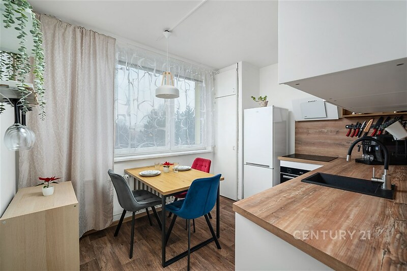 Nabízíme k prodeji byt 1+1 o celkové ploše 49 m², který prošel kompletní rekonstrukcí. Nachází se ve 4. patře panelového domu v klidné části Králova Pole. Obytný pokoj je rozdělen příčkou na dvě samostatné části, takže je možné prostor využít jako obývací pokoj s ložnicí nebo jako obývací pokoj s pracovnou. Kuchyně má kuchyňský kout s prostorem pro jídelní stůl. Koupelna s WC je vybavena sprchovým koutem. V chodbě je umístěna skříň, která poskytuje praktický úložný prostor. Vstupní dveře jsou bezpečnostní, protipožární a vybavené systémem proti zabouchnutí, což zvyšuje bezpečí i komfort při každodenním používání. Součástí bytu je lodžie orientovaná na jihovýchod, sklepní kóje a možnost využívat kočárkárnu. Dům je po revitalizaci, včetně zateplení a nové fasády, což přináší lepší energetickou náročnost a nižší provozní náklady. V bytě jsou nová plastová okna a v domě je výtah. Energetický štítek budovy je C. Měsíční výdaje spojené s užíváním bytu činí celkem 5 241Kč, z toho 1 048 Kč představuje příspěvek na správu domu a pozemku, 3 593 Kč zálohy na služby a 600 Kč záloha za elektřinu pro 2 osoby. Byt se nachází v klidné části Králova Pole, na ulici Božetěchova. V okolí je základní škola, dětské hřiště, obchody i další služby. Zastávka MHD je pár minut od domu a do centra Brna se dostanete přibližně za 15 minut. Parkování je možné v modré zóně C. Díky kompletní rekonstrukci nevyžaduje byt žádné další investice a je připraven k okamžitému nastěhování. Praktické dispoziční řešení a klidná lokalita z něj dělají ideální volbu pro jednotlivce, pár nebo jako bezstarostnou investici.