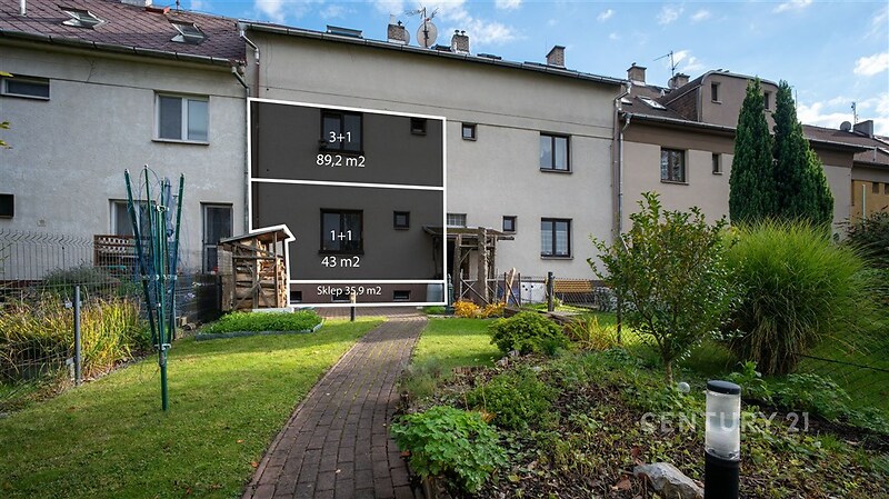 Nabízíme k prodeji část rodinného domu se dvěma samostatnými bytovými jednotkami a zahradou. Tato nemovitost je ideální jak pro dvougenerační bydlení, tak i jako investiční příležitost s možností pronájmu jedné z jednotek. Součástí prodeje jsou dva byty – prostorný mezonetový byt 3+1 a menší byt 1+1, oba se samostatným vstupem, vlastní zahradou a parkovacím místem přímo u domu. Byt 3+1 zaujme svým dvoupodlažním řešením. V přízemí se nachází světlý obývací pokoj, kuchyně s jídelním koutem, koupelna a samostatné WC. V podkroví je druhá koupelna se sprchovým koutem a toaletou a dále dvě ložnice. Nad tímto bytem se nachází také půdní skladovací prostory. Díky tomu nabízí tento byt komfortní rodinné bydlení s dostatkem prostoru a soukromí. Druhá jednotka 1+1 je plně samostatná a tvoří ideální zázemí pro rodiče, hosty nebo jako byt určený k pronájmu. K dispozici je zde kuchyně s jídelnou, ložnice a koupelna se sprchovým koutem a toaletou. Byt má rovněž svůj vlastní vstup i přímý přístup na zahradu. Oba byty využívají společný plynový kondenzační kotel pro vytápění i ohřev vody. Po drobných úpravách lze však systémy oddělit a umožnit tak plnou nezávislost obou jednotek. Tento dvoupodlažní řadový dům stojí na pozemku o rozloze 294 m² a nabízí celkovou užitnou plochu 136 m². Součástí je také sklep o výměře 36 m², který poskytuje dostatek prostoru pro skladování nebo hobby činnost. Zahrada o velikosti 160 m² poskytuje příjemné soukromí, prostor pro posezení i pěstování. Parkování je zajištěno jedním vyhrazeným místem přímo u domu, s možností rozšíření na dvě stání. Dům se nachází na vyvýšeném místě, které nabízí pěkné výhledy a klidné prostředí. Dopravní dostupnost je výborná – v okolí je kompletní občanská vybavenost a rychlé spojení do centra i okolních oblastí. Tato nabídka je ideální pro ty, kdo hledají prostorné a udržované bydlení s možností výnosu z pronájmu. Dům je ihned k dispozici a je možné jej financovat hypotečním úvěrem, který vám rádi pomůžeme zajistit prostřednictvím našich hypotečních specialistů. Těšíme se na vás na osobní prohlídce. Přijďte se přesvědčit, že tento dům nabízí víc, než čekáte – prostor, soukromí i skvělé možnosti do budoucna.