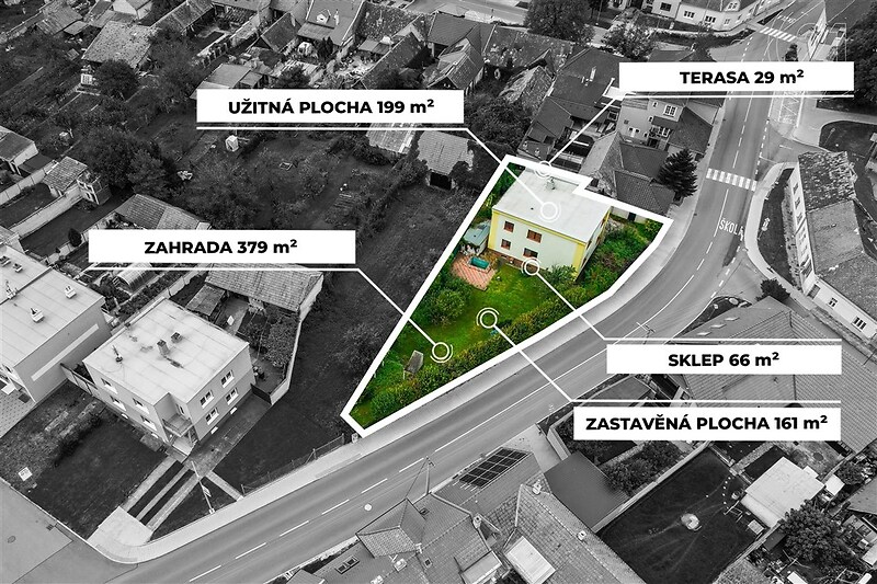 Nabízíme k prodeji dvoupodlažní rodinný dům s podsklepením, který se nachází v klidné obci Hroznová Lhota v okrese Hodonín. Dům stojí na pozemku o celkové výměře 830 m² a díky své dispozici je vhodný pro vícečlennou rodinu, případně jako investice k pronájmu. Nemovitost je možné rozdělit na dvě samostatné bytové jednotky o dispozici 4+kk, což nabízí flexibilitu pro dvougenerační bydlení nebo kombinaci vlastního bydlení a pronájmu. Celková podlahová plocha domu činí 199 m², zastavěná plocha 161 m². Dispozice domu: Vrchní patro tvoří obývací pokoj, ložnice s pracovnou, kuchyně s jídelnou a koupelna. Ve spodním patře se nachází obdobné uspořádání – prostorný obývací pokoj, ložnice a koupelna, navíc zde najdete další koupelnu se záchodem a samostatné WC. Kuchyně v dolním patře zatím není vybudována, což novému majiteli umožňuje zařídit ji podle vlastních představ. K domu patří také prostorný sklep o velikosti 66 m², který poskytuje dostatek místa pro skladování či pro hobby činnosti. Na pozemku se nachází rovněž vinný sklep, který je v současné době neudržovaný, a zahrada o rozloze 379 m², jež vyžaduje úpravy – pro nového majitele tak představuje možnost vytvořit si okolí domu zcela podle vlastních představ. K příjemnému posezení slouží terasa o rozloze 29 m² a parkování je zajištěno pro čtyři vozy přímo u domu. Nemovitost byla postavena v roce 1980 a v roce 2010 prošla kompletní rekonstrukcí. Je postavena z cihel, což zajišťuje dlouhou životnost a nízké náklady na údržbu. Vytápění je řešeno plynem, ohřev vody zajišťuje bojler. Dům je napojen na veřejný vodovod a odpadní vody jsou svedeny do žumpy. Rodinný dům je ihned k nastěhování a prodává se za cenu 7 000 000 Kč. Financování je možné prostřednictvím hypotečního úvěru a vše zajistíme. Pokud hledáte klidné bydlení v malebné vesnici s příjemným sousedstvím a krásným výhledem do okolní krajiny, tato nemovitost v Hroznové Lhotě je skvělou volbou pro vás i vaši rodinu.