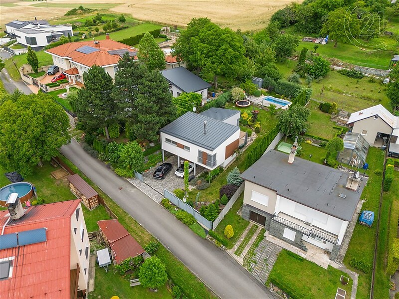 Nabízíme k prodeji exkluzivní rodinný dům, který v sobě spojuje luxus, moderní design a nízké provozní náklady. Tato nemovitost, kolaudovaná v roce 2013, byla postavena z masivních KLH profilů z Rakouska, což zaručuje její mimořádnou kvalitu a dlouhou životnost. Celková užitná plocha domu o dispozici 4+kk je 151m² a je promyšleně rozvržena tak, aby poskytovala maximální komfort pro celou rodinu. Zastavěná plocha činí 132m². Dům se skládá z přízemí, které nabízí vstupní chodbu a technickou místnost s dostatkem úložného prostoru. Po elegantních dřevěných schodech se dostanete do prvního podlaží, kde se nachází celá obytná část. Srdcem domu je prostorný obývací pokoj s krbovými kamny, která jsou napojená na topný systém a významně snižují náklady na vytápění. Z obývacího pokoje je plynulý přechod do kuchyně, kde najdete rohovou linku na míru se špičkovými vestavěnými spotřebiči – myčkou, lednicí, kávovarem a parní troubou. Vytápění a ohřev teplé vody zajišťuje elektrický kotel a teplota se dá regulovat v každém pokoji samostatně. Celkové měsíční náklady na bydlení se pohybují mezi 6000 8000 Kč. V domě je navíc instalován systém splachování toalet vodou ze studny, což přispívá k dalším úsporám. Každý pokoj v domě disponuje francouzským oknem se vstupem přímo na zahradu. Dům stojí na pozemku o celkové rozloze 683m², z čehož 551m² tvoří nádherná, oplocená a udržovaná zahrada se vzrostlými stromy a keři, která poskytuje dostatek soukromí. Na zahradě se nachází bazén se slanou vodou (6x3 m, hloubka 1,5 m) s tepelným čerpadlem, které prodlužuje koupací sezónu. Pohodovou atmosféru doplňuje terasa z bezúdržbových profilů Wood Plastic, ideální pro letní posezení. Zahrada je vybavena zavlažovacím systémem Sprigler, napojeným na studnu. Dům se nachází v klidné lokalitě Vlčnov, místní části obce Starý Jičín, ve vzdálenosti cca 1 km od náměstí obce. Zde najdete širokou občanskou vybavenost včetně pošty, potravin, restaurace, pekárny, ordinace lékaře a autobusové zastávky s pravidelným spojením do okolních měst a obcí. V obci se také nachází škola i školka. Nájezd na dálnici je vzdálený pouhé 2 km. Kvalitní střešní krytina od švédské značky RUUKKI, venkovní žaluzie Climax pro optimální regulaci teploty a světla a lepený vinyl na podlahách, který je vysoce odolný a snadný na údržbu. Celý pozemek je ohraničen žárově pozinkovaným plotem a bránou, což zaručuje dlouhou životnost a minimální údržbu. Vestavěný nábytek od značky Vynab dodává interiéru elegantní a jednotný vzhled. Dům navíc disponuje malou půdou pro úložné prostory. Tento dům je ideální volbou pro ty, kteří hledají moderní a komfortní bydlení bez kompromisů. Je připraven k okamžitému nastěhování. Doporučujeme shlédnout naši 3D prohlídku tohoto domu, kde se dokonale seznámíte s jeho dispozicí a stavem z pohodlí Vašeho soukromí. Pro více informací a domluvení prohlídky kontaktujte prosím makléře Petra.