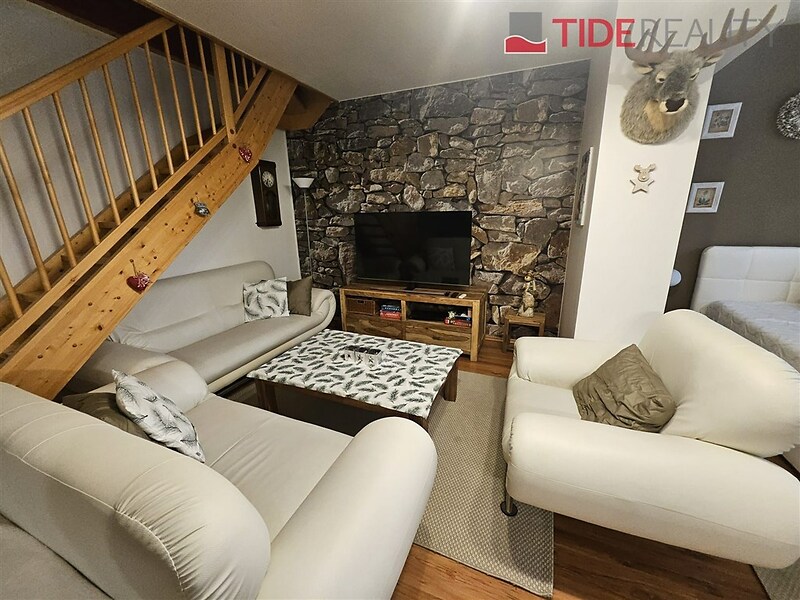 Nabízíme k prodeji kouzelný byt přímo v historickém centru Vrchlabí. Bytová jednotka 2+kk + galerie o ploše 84 m2 ve 2. patře renomované budovy v bezprostřední blízkosti zámku může sloužit pro stálé bydlení i rekreaci v Krkonoších. Kompletní rekonstrukce domu proběhla v roce 2013 a díky ní vzniklo v domě 20 bytů s moderním komfortem při zachování unikátního historického stylu budovy. Příjemný světlý je situován ve dvou úrovních a nabízí pohodlné ubytování pro 4-5 osob. Obývací pokoj s kuchyní je orientován na jihozápad a nabízí dostatečný prostor pro sedací soupravu, jídelní stůl i dvojlůžko. Spodní úroveň je propojena schodištěm s horním podlažím, kde se nachází pracovna na galerii s oknem a oddělená prostorná ložnice s 3 lůžky. Koupelna má vanu, WC i dostatek místa pro pračku a úložné prostory. Dům má domovní plynovou kotelnu, která zajišťuje i ohřev teplé vody pro bytové jednotky. Spolu s bytem je prodávána i komora o ploše 7 m2, které je přímo naproti bytu, celková plocha bytu a komory je 91 m2. Parkování je k dispozici před budovou, společenství vlastníků si pronajímá od města 8 parkovacích stání přímo před domem. Vrchlabí nabízí zázemí pro letní i zimní rekreaci i každodenní život. Prodávaný byt leží v klidném místě a přitom přímo v historickém jádru Vrchlabí, kde naleznete obchody, služby i kulturu doslova za rohem. K lákadlům tohoto malebného města nedávno přibylo i moderní aquacentrum a koncepčně naprosto nové Muzeum Krkonoš situované v klášteře obutých augustiniánů. Na nejbližší sjezdovku na Kamenném vrchu dohlédnete přímo z náměstí, Herlíkovice jsou vzdálené 5 km a Špindlerův Mlýn 14 kilometrů.