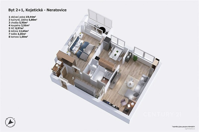 Nabízíme k prodeji krásný a světlý byt o dispozici 2+1, (v osobním vlastnictvi), který se nachází ve 5. nadzemním podlaží bytového domu v klidné a žádané části Neratovic, v ulici Kojetická. Byt je částečně vybavený a jeho velkou přidanou hodnotou je útulný balkon s příjemným výhledem do okolí, který je ideálním místem pro ranní kávu i večerní odpočinek. Byt je velmi světlý, každý pokoj má vlastní okno, a i když je v původním, velmi zachovalém stavu, dává novému majiteli možnost upravit si interiér dle vlastních představ. Lokalita Neratovic je oblíbená díky své výhodné poloze těsně u hranice hlavního města a přitom v prostředí s dostatkem zeleně a klidným sousedstvím. V docházkové vzdálenosti od domu najdete kompletní občanskou vybavenost, která zahrnuje mateřské i základní školy, dětská hřiště, obchody, restaurace, kavárny a další služby každodenního života. V okolí je také poliklinika a několik lékáren, což zajišťuje pohodlný přístup ke zdravotní péči bez nutnosti cestovat za hranice města. Jednou z výhod bydlení v Neratovicích je i velmi dobré dopravní spojení. Nedaleko domu se nachází autobusová zastávka Neratovice, Kojetická, odkud se pohodlně dostanete na stanici metra C – Ládví nebo Letňany, odkud je centrum Prahy rychle a snadno dostupné. Tato kombinace přímého autobusového spojení s napojením na metro dělá každodenní dojíždění jednoduchým a pohodlným. Lokalita je rovněž dobře dostupná i automobilem, přičemž díky blízkému napojení na hlavní dopravní tahy se do centra Prahy dostanete bez komplikací. V okolí je dostatek parků, volnočasových a sportovních ploch vhodných pro procházky, běhání nebo rodinné výlety. Zeleň a otevřené prostory poskytují příjemné prostředí pro trávení volného času a aktivní životní styl. Neratovice tak představují ideální rovnováhu mezi klidným bydlením v menším městě a výhodami života blízko metropole. Tento byt je vhodný jak pro vlastní bydlení v příjemném a klidném prostředí s výbornou dostupností služeb i dopravy, tak i jako zajímavá investiční příležitost s možností dalšího pronájmu. Díky kombinaci kvalitní lokality, kompletní infrastruktury a dostupnosti centra Prahy jde o velmi atraktivní nabídku na současném realitním trhu.
