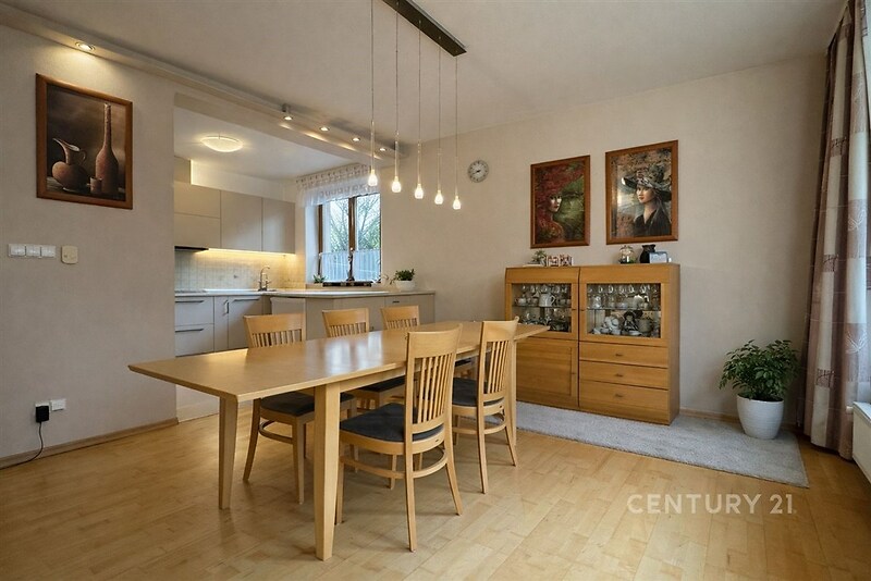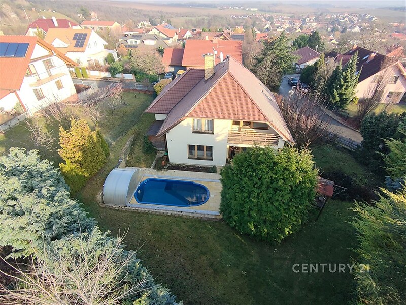 Nabízíme k prodeji nádhernou rodinnou rezidenci v malebné obci Podolí, jen kousek od Brna. Dům s parcelním číslem 1239/459 kombinuje moderní vymoženosti s komfortním bydlením a nachází se v klidné oblasti s výhledem na okolní krajinu. Díky své poloze a směrování na východ, jih a západ poskytuje světlé a slunné prostory během celého dne. Tento dvoupodlažní dům byl postaven v roce 2003 a rozkládá se na pozemku o celkové výměře 804 m², z čehož 657 m² tvoří krásně udržovaná zahrada s bazénem, ideální pro odpočinek a rodinné aktivity. Užitková plocha domu je 325 m², zahrnujíc vysoké stropy s výškou 2,74 metru, což dodává interiéru vzdušnost a prostornost. Dispozice 5+kk nabízí pohodlí a praktičnost – v domě najdete prostornou obývací místnost (46,8 m²,) spojenou s plně vybavenou a nadstandartně řešenou kuchyní (8,4 m²,). Z obývacího pokoje je přímý vstup na terasu s markýzou, ze které je výhled a vstup na zahradu a bazén. V patře jsou tři ložnice o rozměrech (19,2 m²,, 25,1 m², a 39,6 m²,). V suterénu domu se nachází prostorný sklep s dílnou, technickou místností (kotel Buderus s akumulační nádrží) a saunou o celkové výměře podsklepení 77 m², který poskytuje dostatek úložného prostoru. Garáž (39,2 m²), pro dva vozy a další dvě parkovací stání na pozemku přináší velký komfort pro rodiny s více vozidly. Dům je připojen na veřejnou kanalizaci a vodovod, je zde i připojení na plyn a kabelový internet, což zajistí vysoký komfort bydlení. Energetická náročnost budovy bude doložena Lokalita Podolí u Brna je vyhledávaná pro svou klidnou atmosféru, ale zároveň skvělou dostupnost do centra města, což ocení zejména rodiny s dětmi. V obci se nachází mateřská a základní škola, lékař, pošta a další občanská vybavenost. Blízkost Jihomoravského kraje a města Brno nabízí bohaté možnosti pro volnočasové aktivity a kulturu. Pro více informací nebo domluvení prohlídky kontaktujte zprostředkovatele Petra Vyskočila.