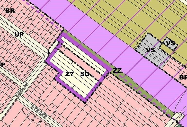 Nabízíme k prodeji pozemek o výměře 2 237 m² vedený jako zahrada, který se nachází v intravilánu města Lanžhot. Pozemek je součástí návrhové plochy Z7 v územním plánu, která je určena jako SO – smíšené obytné území (z celkové rozlohy cca 1 215 m2). Tato plocha umožňuje výstavbu rodinných a bytových domů, občanské vybavenosti, menších služeb či drobných provozoven. Nepřípustné jsou výrobní či logistické areály, které by narušovaly kvalitu bydlení. Regulace připouští zástavbu do dvou nadzemních podlaží s možností podkroví, přičemž každý objekt musí být napojen na veřejnou komunikaci a technickou infrastrukturu a parkování musí být řešeno na vlastním pozemku. Pozemek o rozměrech cca 121,5 × 18,4 m je dobře přístupný a je možné jej napojit na vodovod, kanalizaci a elektrickou síť. Lokalita přímo navazuje na stávající obytnou zástavbu, čímž podporuje kompaktní rozvoj města. Do pozemku částečně zasahuje plocha ZZ (zemědělské využití, bez možnosti zástavby) a také územní rezerva pro vysokorychlostní trať (VRT). Služebnosti přes sousední pozemek jsou zřízeny bezúplatně, na dobu neurčitou a jsou závazné i pro budoucí vlastníky. Pozemek představuje zajímavou investiční příležitost pro výstavbu bydlení v kombinaci s občanskou vybaveností nebo drobnými službami v atraktivní lokalitě města Lanžhot.