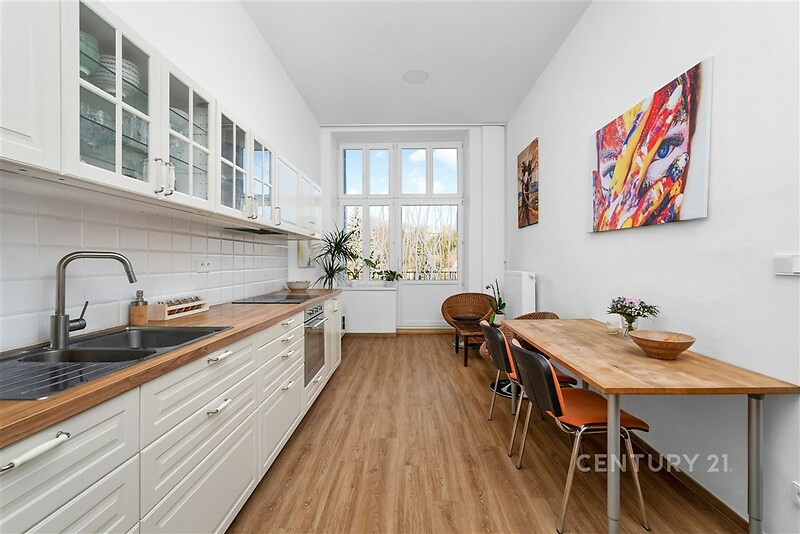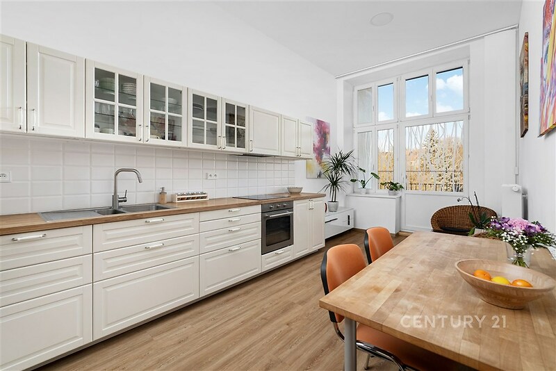 Nabízíme k prodeji prostorný a světlý byt o dispozici 2+1 s podlahovou plochou 102,8 m², nacházející se v historickém domě na adrese Antonína Slavíka, přímo u parku Lužánky. Součástí bytu jsou také dva balkony o celkové výměře 7,83 m². K bytu je také možnost využití menší společné zahrady ve vnitrobloku pro klidné letní posezení. Byt se nachází v domě, který prošel kompletní rekonstrukcí, a je vytápěn vlastní plynovou kotelnou, což zajišťuje stabilní dodávky tepla i dlouhodobě příznivé provozní náklady. Dispozice bytu je velmi praktická a nadstandardně velkorysá. Prostorná vstupní chodba přirozeně propojuje všechny místnosti a nabízí dostatek prostoru pro vestavěné skříně i úložné řešení. Samostatná kuchyně je plně vybavená moderní kuchyňskou linkou s vestavěnými spotřebiči a nabízí dostatek místa pro velký jídelní stůl. Z kuchyně je přímý vstup na jeden z balkonů orientovaný do klidného vnitrobloku s přímým výhledem na vilu Tugendhat a zeleň, což je jedním z největších benefitů této nemovitosti. Oba obytné pokoje jsou velmi prostorné, světlé a díky velkým oknům působí mimořádně vzdušně. Bez problémů zde vznikne pohodlný obývací pokoj, ložnice i pracovní kout. Druhý balkon přístupný z pokoje poskytuje další venkovní prostor a rozšiřuje možnosti užívání bytu. Koupelna je vybavena rohovou vanou, topným žebříkem a moderními obklady. Samostatná toaleta zvyšuje komfort každodenního provozu. Velkým praktickým bonusem je také samostatná technická místnost, která slouží pro pračku, sušičku i další úložné potřeby. Interiér prošel kvalitní rekonstrukcí a je ve velmi dobrém technickém stavu. Vysoké stropy, nové podlahy, moderní osvětlení a dřevěné obložkové dveře podtrhují celkově elegantní a nadčasový charakter bytu. Byt se prodává kompletně vybavený, včetně kuchyně, skříní a většiny nábytku z fotografií, s výjimkou malého stolku a křesílek v kuchyni, což umožňuje okamžité nastěhování nebo rychlé zahájení pronájmu bez dalších investic. Celkové náklady za byt činí 8 414 Kč měsíčně. V tom je započítána elektřina 1 390 Kč měsíčně, platba SVJ 6424 Kč měsíčně a internet 600 Kč měsíčně. Samotný dům je architektonicky velmi hodnotný historický rohový objekt s bohatě zdobenou fasádou, který patří k dominantám této části Brna a výrazně zvyšuje prestiž celé adresy. Poloha u parku Lužánky patří dlouhodobě k nejžádanějším v Brně – nabízí kombinaci klidu, zeleně a přitom vynikající dostupnosti do centra města. Zastávky MHD jsou v bezprostřední blízkosti a do centra Brna se dostanete během několika minut. Tento byt představuje výjimečnou nabídku jak pro vlastní komfortní bydlení, tak i jako velmi stabilní a atraktivní investici v jedné z nejlepších lokalit města. Pokud hledáte prostorný byt s výhledy do zeleně, balkony, kvalitním zázemím domu a prestižní adresou, je tato nemovitost ideální volbou.