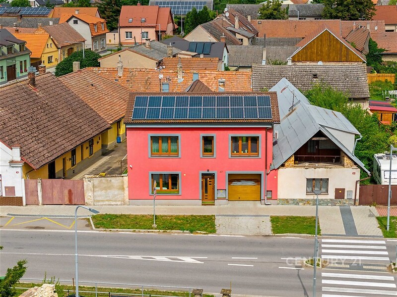 Nabízíme k prodeji prostorný rodinný dům o dispozici 6+1 na pozemku o výměře 289 m². Užitná plocha domu činí 252 m², zastavěná plocha je 169 m². Součástí je místnost se samostatným vstupem ze zahrady, vhodná jako pracovna nebo pokoj pro hosty. Další samostatná místnost je kolaudována jako provozovna (dříve masérna), s hygienickým zázemím, umyvadlem s teplou vodou a se samostatnou toaletou. V domě se nachází obývací pokoj s krbem, moderní kuchyně s indukční varnou deskou, vestavnou troubou a dalšími spotřebiči, koupelna s vanou i sprchovým koutem a další obytné místnosti. V části domu je podlahové elektrické vytápění, jinak je vytápění řešeno plynovým kondenzačním kotlem a radiátory. Součástí domu je garáž s nabíjecí stanicí pro elektromobil (Wallbox) a fotovoltaika, která výrazně snižuje provozní náklady. K dispozici je také prostorný sklep, ve kterém se nachází i velká místnost vhodná pro další využití – například domácí wellness, dílnu nebo sklad. Nemovitost je napojena na městský vodovod, kanalizaci i vlastní studnu. K dispozici je také zahrada s venkovním posezením.