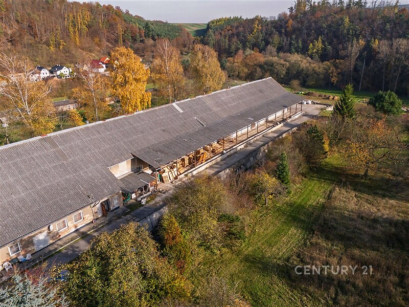 Nabízíme k prodeji rozsáhlou zemědělskou stavbu objekt bývalého kravína, který v posledních letech sloužil jako skladovací prostory. Tato nemovitost představuje výjimečnou investiční příležitost pro podnikání, skladování, lehkou výrobu nebo po kompletní rekonstrukci i pro jiné účely. Klíčové Vlastnosti a Parametry • Zastavěná plocha stavby: 1026 m² • Celková výměra pozemků: 6360 m² (včetně zastavěné plochy a příjezdové cesty) • Stav objektu: Zděná stavba, vhodná k celkové rekonstrukci. Většina prvků je v původním stavu, střecha je eternitová. • Vlastní příjezdová cesta od hlavní komunikace, zpevněná komunikace kolem celého objektu, areál je oplocen. Investiční Potenciál a Územní Plán • Územní plán: Dle platného územního plánu obce se nemovitost nachází v zastavitelném území smíšené venkovské (SV). • Možnost developerského projektu: Tato klíčová informace otevírá potenciál pro budoucí developerský projekt. Po případném odstranění stávající stavby je možné pozemky využít pro výstavbu rodinných domů! Dispozice Objektu Přízemí (Skladové a Provozní Prostory) • Hlavní otevřená plocha: Přibližně 70 x 10,50 metru (cca 735 m²). • Výška stropu: cca 3,25 metru, ideální pro skladování nebo výrobní linku. • Zázemí: Součástí přízemí je menší místnost bývalé kanceláře (20 m²) a toaleta s umyvadlem. Bytová Jednotka (Přízemí) • Byt: Jednotka 1+kk o výměře cca 40 m². • Vstup: Má samostatný vchod zvenčí, což umožňuje její nezávislé využití. • Vytápění a ohřev teplé vody v bytové jednotce zajišťuje plynový kotel. Podkroví • Otevřený prostor: Rozsáhlá, otevřená plocha přes celou výměru stavby s betonovými podlahami. Inženýrské Sítě Objekt je kompletně napojen na všechny důležité sítě: • Elektřina • Plyn • Kanalizace • Voda ✅ Využití a Potenciál Díky velkorysé rozloze a napojení na sítě je nemovitost ideální pro: • Okamžité využití: Skladování / Logistika / Lehká výroba. • Dlouhodobá investice: Přestavba pro podnikání, nebo demolice a výstavba rodinných domů (dle ÚP). Lokalita • Klidné místo v řídké zástavbě rodinných domů a zemědělských staveb s hezkými výhledy do okolí.