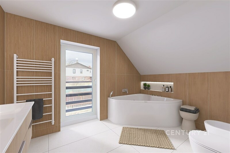 Nabízíme k prodeji samostatně stojící novostavbu rodinného domu o dispozici 6+kk s obytným podkrovím, situovanou v klidné severní části obce Kozmice u Benešova, na pozemku o výměře 804 m². Dům je navržen jako trvalá stavba pro rodinné bydlení s důrazem na kvalitní konstrukční řešení, dostatek prostoru a vysoký podíl zeleně na pozemku. Základní informace Dispozice: 6+kk Celková podlahová plocha: 141,94 m² Zastavěná plocha: 98 m² Pozemek: 804 m² Počet obytných místností: 7 Počet podlaží: 1 NP + obytné podkroví Parkování: 2 parkovací stání na vlastním pozemku Stavba: zděná, nepodsklepená Výška hřebene: 7,64 m Zastavěnost pozemku činí pouze 11,7 %, zeleň tvoří více než 73 % plochy – ideální kombinace komfortního bydlení a soukromí. Dispoziční řešení Přízemí (1.NP) nabízí: zádveří a chodbu obývací pokoj s kuchyňským koutem ložnici se šatnou koupelnu s WC technickou místnost sklad schodiště do podkroví Obytné podkroví (2.NP): 4 samostatné pokoje pracovnu koupelnu s WC chodbu vstup do půdního prostoru Dispozice je ideální pro větší rodinu, případně kombinaci bydlení a home office. Technické provedení a konstrukce Nosné zdivo: Ytong Statik 300 mm Zateplení: minerální vlna tl. 140 mm (kontaktní zateplovací systém) Stropy: monolit Střecha: sedlová, sklon 40°, betonová tašková krytina (tmavě šedá) Krov: dřevěný vaznicový Okna: dřevěná s izolačními trojskly (Uw max. 0,9 W/m²K) Vytápění: podlahové Komín: třísložkový s keramickou vložkou Založení: základové pasy + železobetonová deska Dům splňuje požadavky platných norem na tepelný odpor konstrukcí. Inženýrské sítě a technické zázemí Elektrická přípojka NN (3x25 A, 380 V) Vlastní vrtaná studna (řešeno) Plastová jímka na splaškové vody Dešťové vody řešeny v rámci pozemku Štěrková příjezdová a parkovací plocha (117 m²) V lokalitě probíhá výstavba městského vodovodního a kanalizačního řadu s předpokládaným termínem dokončení cca konec roku 2026. Po dokončení se bude možné nemovitost na tyto inženýrské sítě napojit. Lokalita Obec Kozmice u Benešova nabízí klidné venkovské bydlení s dobrou dostupností do Benešova i do Prahy (cca 20 minut). Pozemek se nachází v zastavěném území obce, v intravilánu, s přímým napojením na místní komunikaci. ✔ klidná část obce ✔ minimální okolní zástavba ✔ dostatek soukromí ✔ vlastní přístup z obecní komunikace V docházkové či krátké dojezdové vzdálenosti se nachází základní občanská vybavenost, kompletní služby jsou dostupné v Benešově.