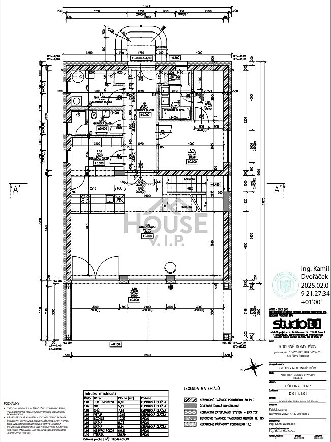 Nabízíme k prodeji slunný stavební pozemek o výměře 1 000 m² v klidné části obce Podbořany s krásným výhledem do zeleně. Součástí prodeje je projekt moderního rodinného domu 4+kk o užitné ploše 194 m², jehož realizace bude provedena přímo současným vlastníkem pozemku – stavební firmou s dlouholetou zkušeností v oboru. Schválení stavebního povolení očekáváme koncem roku 2025. Podmínka koupě: Realizace stavby může být provedena vlastníkem pozemku s rozsáhlými zkušenostmi s výstavbou podobných projektů, který zajistí kompletní výstavbu od základů až po dokončení, dle domluveného rozsahu a standardu. Je také možné koupit pozemek ihned s hotovým projektem za uvedenou cenu a realizovat projekt svépomocí. Cena zahrnuje: pozemek 1 000 m². Za příplatek je realizace hrubé stavby (základy, nosné konstrukce, střecha, zateplení, okna, dveře, schodiště) + možnost dokončení na klíč dle vizualizace nebo individuálních požadavků. Financování stavby je možné rozdělit na jednotlivé etapy, takže celou částku nemusíte platit najednou. Hlavní parametry plánované stavby: Zastavěná plocha: 178,57 m². Podlahová plocha: 194,25 m². • 1. NP: 117,42 m² + terasa 35,79 m². • 2. NP: 76,83 m². Výška stavby: 8,86 m. Lokalita: tichá část obce, 350 m od zastávky autobusu směr Žatec. Plná občanská vybavenost v Podbořanech, dobrá dostupnost do větších měst. Projekt domu navržen s důrazem na kvalitu materiálů, energetickou úspornost a komfortní bydlení. Bonus: na prodej je také sousední pozemek o stejné výměře 1 000 m² se stejnou možností realizace. Konstrukce: dutinové keramické tvárnice, železobetonový monolitický strop (250 mm). Vytápění: tepelné čerpadlo + krbová vložka. Další technologie: fotovoltaika, domovní ČOV, přípojka vody ze stávající studny. Energetická náročnost: Plánovaný PENB třídy "A" – nízkoenergetický až pasivní dům s velmi nízkými provozními náklady. Pokud hledáte krásný pozemek s jistotou profesionální a kvalitní realizace moderní stavby, tato nabídka je ideální kombinací investice a budoucího komfortního bydlení.