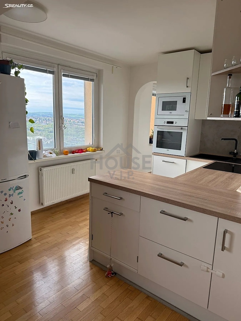 Nabízíme k prodeji světlý a mimořádně prostorný byt 2+kk o celkové ploše 68 m², situovaný v 17. patře udržovaného bytového domu. Byt se pyšní unikátním panoramatickým výhledem na velkou část Prahy, který patří k jeho hlavním přednostem. Dispozice bytu je velmi praktická. Po vstupu se nachází prostorná předsíň s vestavěnou skříní a navazující samostatná komora, ideální pro úložné účely. Z předsíně pokračuje chodba s výhledem do zeleně, která vede k nové, částečně oddělené kuchyni s moderním vybavením. Po levé straně chodby je umístěna nadstandardně velká koupelna, vybavená jak rohovou vanou, tak samostatným sprchovým koutem. Na kuchyň navazuje obývací pokoj s jídelní částí, orientovaný k výhledu z oken. Obývací část je od ložnice oddělena posuvnými dveřmi, které umožňují flexibilní využití prostoru. Ložnice disponuje prostornou šatní skříní. Ve všech obytných místnostech jsou nově zrenovované dřevěné parkety. Vestavěné skříně jsou součástí prodeje (případně dle dohody). Významnou výhodou bytu je naprostý klid a soukromí – nad bytem se nachází pouze technické patro, po obvodu jsou chodby a výtahy, byt tak nemá přímé sousedy. Střecha domu je ve velmi dobrém stavu, bez známek zatékání. Dům se nachází na sídlišti Krč s kompletní občanskou vybaveností. Stanice metra Kačerov je dostupná dvě zastávky MHD. Do budoucna je plánována stanice metra D v bezprostřední blízkosti domu, což výrazně zvyšuje atraktivitu nemovitosti jak pro vlastní bydlení, tak pro investici. V bytě je aktuálně nájemní smlouva platná do konce července 2026. Po dohodě je možné nájemní vztah ukončit či prodloužit – nájemce má zájem v bytě zůstat. Současné nájemné činí 23 000 Kč + 6 904 Kč zálohy na služby a energie.