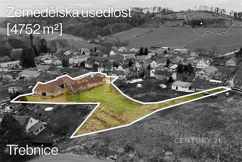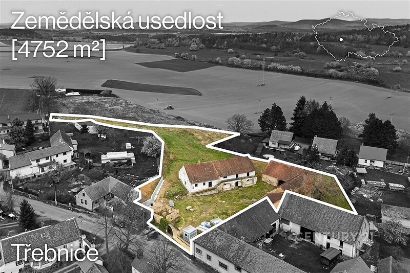 Nabízíme k prodeji tradiční zemědělskou usedlost s pozemky o celkové výměře 4 752 m² v klidné části obce Třebnice u Sedlčan (okres Příbram). Nemovitost tvoří uzavřený dvůr, který zajišťuje dostatek soukromí a zároveň nabízí široké možnosti využití – od rodinného bydlení až po podnikání. Hlavní obytný objekt (rodinný dům č.p. 8) je více než 100 let stará stavba v původním stavu, určená ke kompletní rekonstrukci. Dům je částečně podsklepený, se dvěma kamennými sklepy s klenutými stropy (103 m² a 11 m²). V 1. nadzemním podlaží se nachází chodba a čtyři prostorné pokoje. Podlahová plocha obytné části činí 130,2 m², celkově včetně příslušenství 244,2 m². K dispozici je také půdní prostor vhodný k vestavbě. Konstrukce domu je kombinací kamenného suterénu a zděného nadzemního podlaží, střecha je sedlová s krytinou z bobrovek. Objekt je dlouhodobě neobývaný a vyžaduje kompletní rekonstrukci. Z inženýrských sítí je zavedena elektřina (230/400 V). Voda, kanalizace, plyn ani vytápění nejsou aktuálně řešeny. Na pozemku se nachází vlastní studna (vrt). Součástí usedlosti jsou hospodářské budovy tvořící uzavřený celek: zděná budova se pultovou střechou (sklad) a dvě stodoly smíšené konstrukce. Stavby nabízejí potenciál pro dílnu, ateliér, skladování, chov zvířat nebo přestavbu na ubytovací kapacity. Pozemky jsou převážně rovinaté a dle územního plánu vedené jako plochy smíšené obytné venkovské, což umožňuje kombinaci bydlení s podnikatelskými aktivitami. Veškerá občanská vybavenost je dostupná v Sedlčanech (cca 3 km). Lokalita nabízí dobrou dopravní dostupnost, včetně spojení do Prahy (cca 60–70 km). Nemovitost představuje zajímavou investiční příležitost s širokým spektrem využití – ideální pro vybudování rodinného sídla, venkovské farmy, stylového penzionu, agroturistiky či kombinace bydlení a podnikání. Díky uzavřenému dvoru, rozsahu pozemků a autentickému charakteru nabízí jedinečný základ pro projekt s vysokou přidanou hodnotou. Pokud hledáte místo s duší, soukromím a potenciálem vytvořit něco výjimečného podle vlastních představ, tato usedlost je příležitost, která se na trhu objevuje jen zřídka.