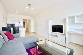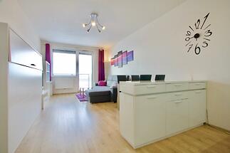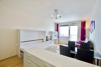 Nabízíme k prodeji zařízený byt, který se nachází v 19. NP bytového domu Eliška v pražských Vysočanech. K dispozici je vešekeré vybavení (viz. aktuální foto) jako je lednice, pračka, nadstandardně kvalitní kuchyňská linka s myčkou a horkovzdušnou troubou, psací stůl, rozkládací postel atd. Příjemným plusem je bezesporu balkon s panoramatickým výhledem na Prahu, prostorná vestavěná skříň v předsíni. Perfektní dopravní dospupnost do centa města, stanice metra Vysočanská (B) do 5. min, chůze, stejně jako nákupní centra Fenix a Harfa. V domě je 24/7 recepce, Přímo před domem vede cyklostezka a in-line dráha. Zálohy za domovní služby (FO, odměny, teplo, TUV a studená voda, svoz odpadu, výtah, atd.) 3.886,- Kč/měs + spotřeba elektřiny (cca 800,- Kč/měs) V současné době je byt pronajat.
