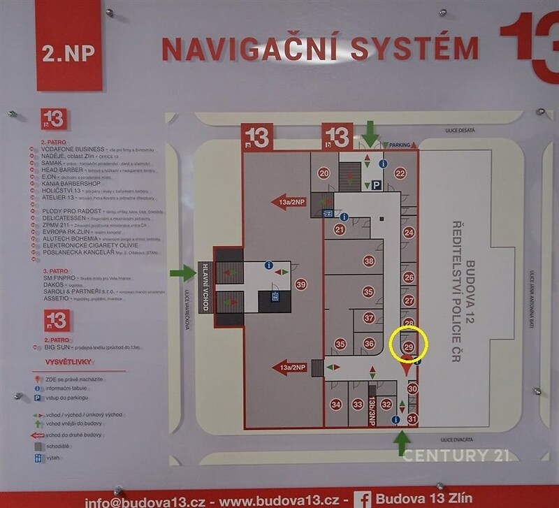 Nabízíme k pronájmu atraktivní komerční prostor nacházející se v centru Zlína, ve frekventované prodejní pasáži v Budově 13. Budova byla postavena již v roce 1918, jako část Baťova výrobního areálu a v roce 2015 prošla komplexní přestavbou, díky čemuž dnes odpovídá všem moderním standardům. Díky citlivé rekonstrukci zde zůstal zachován podnikatelský duch tohoto místa. Celková rozloha prostor činí 44 m², a jsou rozděleny do tří částí. Přední část (asi 20m2) je viditelná z pasáže přes výlohu a je vybavena zděným barovým pultem. Za dveřmi z masivu je oddělená místnost (asi 20m2) a malá místnost s umyvadly jako zázemí. Prostor je obvzlášt vhodný pro služby fyzioterapeuta, maséra nebo podobný typ podnikání. Individuální úpravy prostor dle požadavku budoucího nájemce jsou možné. Prostory jsou dostupné ihned. V budově a v jejím okolí mají sídla desítky firem a institucí. V těsné blízkosti naleznete škálu služeb včetně bank, úřadů, pošty, nákupních center, restaurací, kulturních zařízení, lékařských ordinací a dalších obchodů. Pokud jde o dostupnost parkování je možné na několika parkovištích v okolí. Vedle budovy je zastávka MHD a nedaleko najdete také autobusové a vlakové nádraží. Měsíční nájemné je stanoveno na 12 833 Kč, dále se hradí servisní poplatek 1 716 Kč a poplatek za energie dle aktuální spotřeby. Ceny jsou uvedeny bez DPH. Prostory jsou dostupné ihned. Pokud hledáte zajímavé místo pro vaše podníkání v centru Zlína, tento komerční prostor na Vavrečkově ulici by měl být vaší první volbou. Těšíme se na Vaši návštěvu.