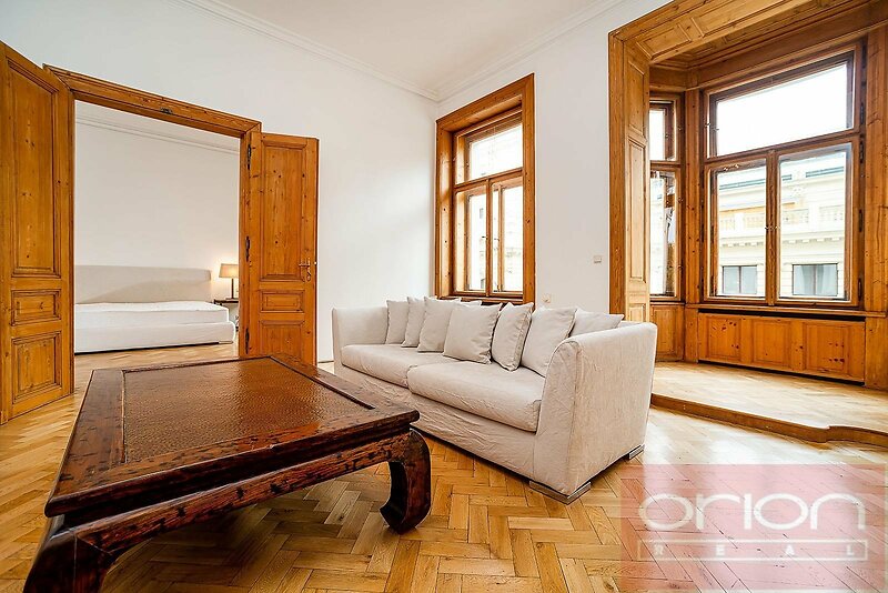 Nabízíme k pronájmu atypický luxusní byt 5+1 ve 4. patře secesního domu s výtahem, který se nachází v atraktivní rezidenční čtvrti Prahy 2 - Vinohrady naproti budově Vinohradského divadla, jen pár metrů od Náměstí Míru. Plně zařízený byt s celkovou plochou 171 m² nabízí vstupní halu, prostorný obývací pokoj se vstupem na balkon, kompletně vybavenou kuchyň, jídelnu, 3 ložnice, 2 koupelny (jednu s vanou a jednu se sprchou + toaletou), samostatnou toaletu a technickou místnost s pračkou a sušičkou. K vybavení bytu patří dřevěné parkety a mramorové obklady v koupelnách, internet, satelit. Lokalita s výbornou dopravní dostupnosí, občanskou vybaveností, v blízkém okolí je množství restaurací, kaváren, bister, obchodů a dalších služeb. Pár kroků od domu jsou stanice tramvají, autobusů a metra. Václavské náměstí či park Riegrovy sady jsou jen několik minut chůze od domu. Nájemné 5500 EUR měsíčně, možnost pronájmu parkovacího stání v podzemní garáži za extra 200 Eur za měsíc.