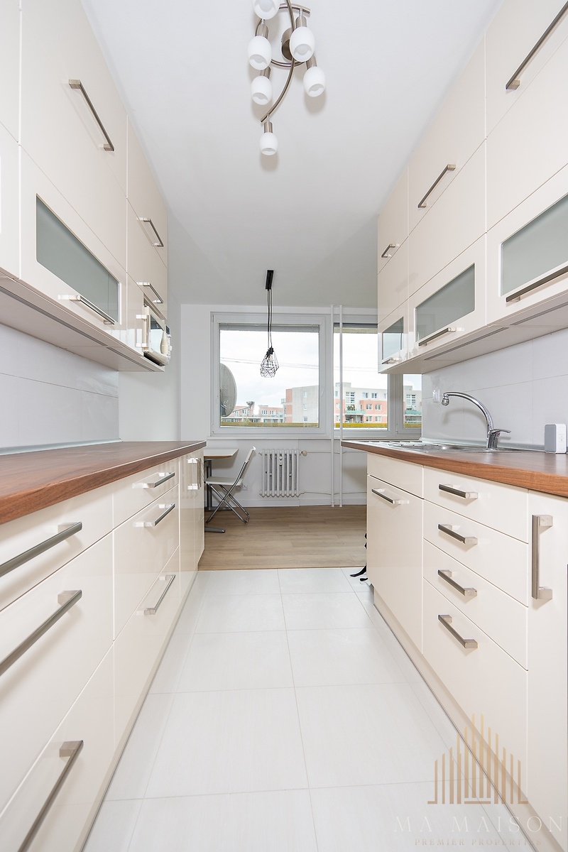 Nabízíme k pronájmu byt o dispozici 3+kk s výměrou 73 m² s vlastním balkonem v klidné lokalitě Prahy na Černém Mostě. Byt je kompletně rekonstruován a dispozičně velice vhodně řešen. Nachází v 3. patře panelového domu s výtahem a sestává ze: vstupní předsíně se vstupem do dětského pokoje, ložnice, koupelny, toalety, obývacího pokoje a kuchyně. Celý obytný prostor je průchozí kolem dokola. V samotném středu bytového prostoru je koupelna a toaletou, která je od koupelny oddělená. Koupelna je vybavena vanou, umyvadlem, umyvadlovou skříňkou, zrcadlem a pračkou. Obývací pokoj je velice prostorný a prázdný bez dalšího vybavení. Nachází se zde pouze pracovní stůl s jednou židlí. Volně navazuje na kuchyň, která je průchozí jak z obývacího pokoje tak z chodby. Kuchyňská linka se nachází na obou dvou stranách a je téměř kompletně vybavena - varná deska s troubou, digestoř, mikrovlnná trouba, myčka (bude dodána). Ložnice je vybavena manželskou postelí vč. matrací a vestavnou šatní skříní. Dětský pokoj je vybaven dvoupatrovou postelí vč. matrací a opět vestavnou šatní skříní. Měsíční náklady bytu činí 7.000 Kč (vč. pojištění domácnosti a odpovědnosti). El. energie se převádí na nájemníka - převod zajistíme za Vás. Vratná kauce je 40.000 Kč (lze rozdělit do dvou plateb). Provize RK: 1x měsíční nájem + 21% DPH. V rámci procesu rezervace provádíme lustraci v bankovních a nebankovních registrech, solus a pod. Nulový záznam podmínkou. Volné od 1.12.2025. Velmi příjemná a klidná lokalita. Okolí nabízí spoustu nákupních možností například v podobě obchodního domu CČM, IKEA, MAKRO, SCONTO a spoustu dalších, škola a školka v pěší vzdálenosti od domu, stanice MHD Bus 5 minut chůze, metro Černý Most 10-15 minut chůze.