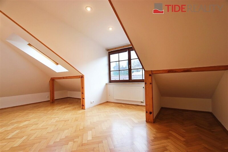Nabízíme k pronájmu část činžovní vily, mezonetový byt umístěný v 1. patře a podkroví, který má celkovou obytnou plochu 350 m2. Nabízí 4 ložnice, prostorný obývací pokoj s krbem, arkýřem a s přímým vstupem na terasu a zahradu, dále plně vybavená kuchyň s jídelním koutem, 4 koupelny (2 ensuite). V suterénu domu je k dispozici prádelna, sauna s tělocvičnou. Dřevěné podlahy, dlažba, podlahové topení. Garáž pro 2 auta. PENB třída G. K dispozici od 1.3. 2026, prohlídky jsou možné po předchozí domluvě.