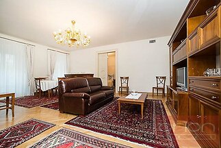 Nabízíme k pronájmu exkluzivní, plně zařízený byt 3+kk o rozloze 96 m², situovaný v 1. patře zrekonstruovaného činžovního domu s výtahem, soukromou zahradou, vyhřívaným bazénem a podzemními garážemi ve vyhledávané lokalitě Praha 2 - Vinohrady. Dispozice bytu zahrnuje vstupní halu, prostorný obývací pokoj s plně vybavenou kuchyní (včetně spotřebičů), dvě ložnice, koupelnu s vanou, umyvadlem a toaletou, a samostatnou toaletu. Byt se nachází ve velmi atraktivní a vyhledávané lokalitě pražských Vinohrad, s výbornou občanskou vybaveností a skvělou dopravní dostupností – stanice metra a tramvajové zastávky jsou jen pár kroků od domu, autobusová zastávka přímo před domem. Lokalita nabízí široké spektrum služeb – restaurace, kavárny, obchody, kulturní zařízení i školy. V docházkové vzdálenosti je oblíbený park Riegrovy sady a Václavské náměstí. Možnost pronájmu parkovacího stání v podzemní garáži od 200 EUR + DPH/měsíc.