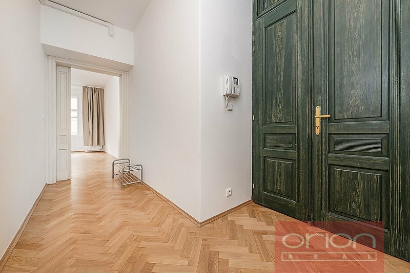 Nabízíme k pronájmu klasický byt s vysokými stropy a parketami o velikosti 3+kk (70 m² ) s balkonem 3 m², situovaný ve 4. patře činžovního domu s recepcí ve vyhledávané lokalitě Praha 1 – Staré Město. Byt disponuje vstupní chodbou, prostorným obývacím pokojem s arkýřovým oknem, s plně vybavenou kuchyní (včetně všech spotřebičů), dvěma ložnicemi s vestavěnými skříněmi, koupelnou se sprchovým koutem a toaletou. Vybavení bytu zahrnuje na podlahách v pokojích parkety, dlažbu v koupelně, vestavěné skříně, pračku, vlastní plynový kotel (vytápění a ohřev vody), klimatizaci v obývacím pokoji. Od ledna 2026 bude k dispozici 1 garážové stání přímo v domě za měsíční poplatek 4 000 Kč. Byt je umístěn ve výjimečně atraktivní lokalita v historickém centru Prahy, v pěší vzdálenosti se nachází Staroměstské náměstí, Karlův most, Židovský hřbitov a další památky. V okolí množství restaurací, kaváren, bister, obchodů a nákupní centrum Palladium. Skvělá dopravní dostupnost – stanice metra a tramvají jsou jen pár minut chůze, snadný nájezd na Pražskou magistrálu a dálniční síť.