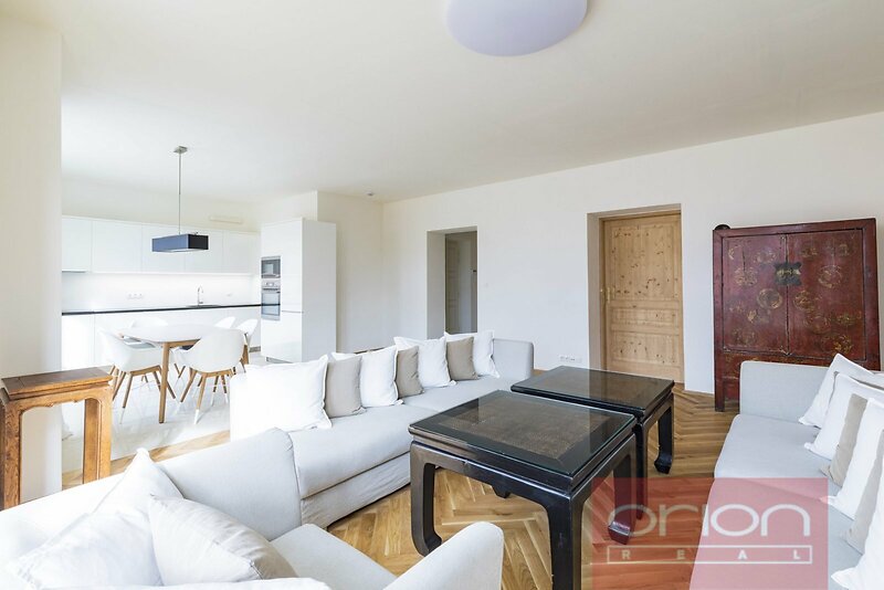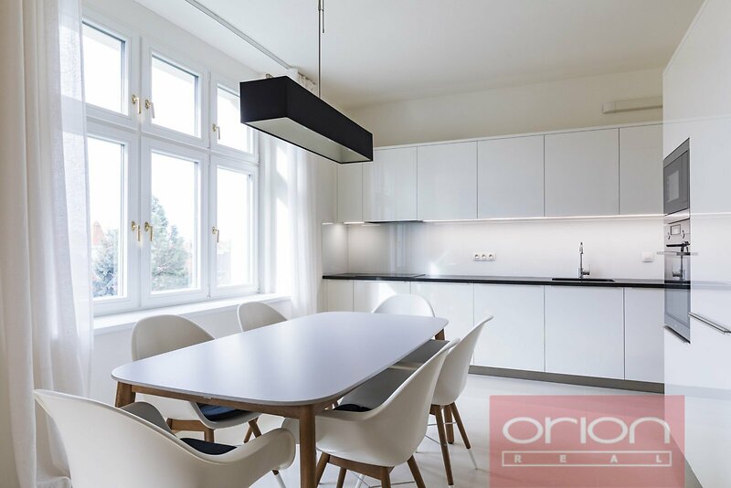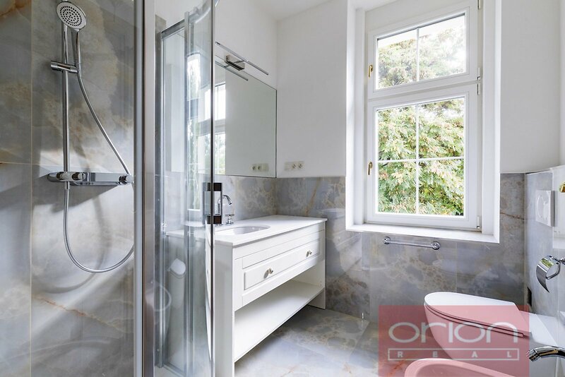 Nabízíme k pronájmu kompletně zrekonstruovaný, klimatizovaný byt v 1. patře rodinné vily se zahradou ve vyhledávané lokalitě Praha 10 - Vinohrady. Luxusní zařízený byt 4+1 má plochu 120 m2 a nabízí vstupní halu, plně vybavenou moderní kuchyň s jídelním koutem, prostorný a světlý obývací pokoj s velkými okny, s arkýřem a se vstupem na jižně orientovanou terasu o velikosti 10 m2, 3 ložnice, 3 koupelny (vana, sprchový kout, bidet, umyvadlo)), komoru. K vybavení bytu patří dřevěné parkety a mramorová dlažba s podlahovým vytápěním, pračka se sušičkou, klimatizace, alarm a samostatný plynový kotel. Dům se nachází v klidné vilové čtvrti, pouze pár kroků od tramvajové zastávky, 15 minut chůze ke stanici metra a nákupnímu centru Flora. Lokalita s velice dobrou dopravní dostupností MHD i autem, s veškerou občanskou vybaveností. V blízkém okolí množství obhodů, restaurací, bister, kaváren, nedaleko parků a městské zeleně. Preferovaná platba nájmu v EUR .