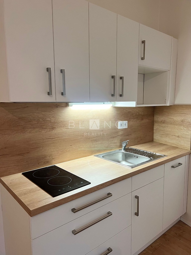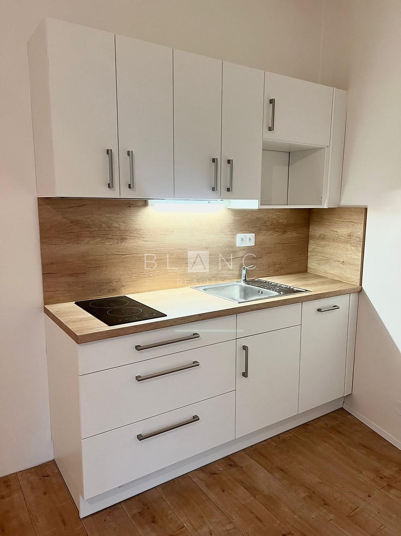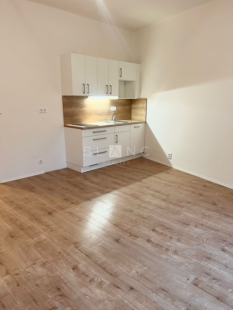 Nabízíme k pronájmu kompletně zrekonstruovaný nezařízený byt o dispozici 1+kk v 1.NP bytového domu s výhledem do vnitrobloku. Byt sestává z pokoje, předsíně a koupelny se sprchovým koutem. V bytě je kuchyňská linka s elektrickou deskou. K bytu si můžete pronajmout sklep za 400kč měsíčně. Cena nájmu: 15 000,- Kč + 2800,- Kč poplatky. Elektřina se převádí na nájemníka. Provize RK: 15 000,- Kč + DPH 21%. Kauce 30 000,- Kč. Volný k nastěhování ihned. Dům stojí v klidné části Vršovic v blízkosti Heroldových sadů a Bohdaleckého lesa, v lokalitě s rychlou dostupností do centra. Pár minut pěšky se nachází autobusová zastávka i tramvajová zastávka. Pro více informací ohledně této nemovitosti nebo domluvení prohlídky nás neváhejte kontaktovat.