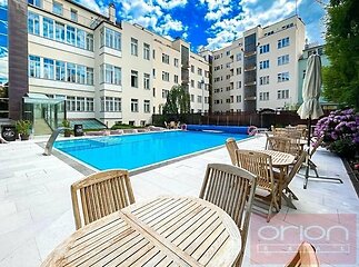 Nabízíme k pronájmu luxusní zařízený byt 1+kk s balkonem ve 4. patře neorenesančního domu Rezidence Italská z konce 19. století s udržovanou soukromou zahradou s vyhřívaným bazénem ve vyhledávané lokalitě Praha 2 - Vinohrady. Rezidenční dům je po kompletní rekonstrukci se zachováním všech architektonických prvků a je vybaven prémiovými a luxusními materiály. Nadstardantně zařízený byt o velikosti 38 m2 nabízí obývací pokoj orientovaný do vnitrobloku s výhledem na zahradu a bazén, plně vybaveným kuchyňským koutem vč. nádobí, koupelnu s vanou a s toaletou a balkon a velikosti 11 m2. Byt je vybaven italským nábytkem, ručně tkanými koberci, luxusními spotřebiči,, na podlahách jsou dřevěné parkety a dlažba. K vybavení bytu patří pračka se sušičkou, klimatizace, videotelefon, satelitní TV. Možnost zajistit pravidelný úklid bytu. V bytě jsou zachovány původní prvky. V rámci rezidence je také sauna, několikapatrové garáže, výtah, kamerový systém a ostraha. Součástí domu je vyhlášená italská cukrárna s produkty dovezenými přímo z Itálie. Možnost parkování v podzemní garáži za cenu od 200 Eur + DPH. Dům se nachází jen pár kroků od stanice metra Náměstí Míru, pár minut chůze na Václavské náměstí. V blízkosti je množství kaváren, vyhlášených restaurací, bister, lokálních obchodů, oblíbený park Riegrovy sady.
