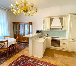 Nabízíme k pronájmu luxusní zařízený byt 3+kk ve 4. patře zrenovovaného činžovního domu s výtahem ve vyhledávané lokalitě Praha 1 - Nové Město. Byt má celkovou plochu 79m2 a nabízí vstupní chodbu, obývací pokoj, plně vybavenou kuchyň s jídelním koutem, 2 ložnice, koupelnu s vanou, toaletou a bidetem, samostatnou toaletu. K vybavení bytu patří dřevěné parkety a dlažba, klimatizace, je vybaven ve vysokém standardu včetně nádobí a ručníků. V lokalitě je veškerá občanská vybavenost, restaurace, kavárny, obchody. Pár minut pěšky ke stanice metra a tramvají Náměstí Republiky. V blízkosti jsou obchody, restaurace, kavárny, bistra a luxusní nákupní centrum Palladium. Lokalita s výbornou dopravní dostupností autem a MHD, zároveň v těsné blízkosti historického jádra Prahy.
