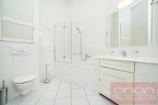 Nabízíme k pronájmu nadstandardně zařízený byt 4+kk s celkovou plochou 120 m2 v 1. patře zrekonstruovaného činžovního domu s výtahem v klidné ulici v centru Prahy 1 - Nové Město pár kroků od Náměstí republiky. u nákupního centra Palladium. Stylově zařízený byt nabízí vstupní chodbu, obývací pokoj, plně vybavenou kuchyň, 2-3 ložnice - jednu s vlastní koupelnou s vanou a toaletou, druhou koupelnu se sprchovým koutem, toaletou a bidetem. K vybavení bytu patří dřevěné parkety a dlažba, klimatizace, je vybaven ve vysokém standardu včetně nádobí a ručníků. V lokalitě je veškerá občanská vybavenost, restaurace, kavárny, obchody, nedaleko je park Letná. Pár minut pěšky ke stanice metra a tramvají Náměstí Republiky.