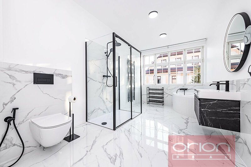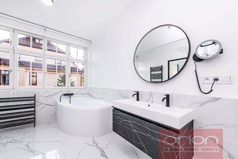 Nabízíme k pronájmu nově zrekonstruovaný byt v 1. patře domu s udržovanou zahradou ve vilové čtvrti Hanspaulka ve vyhledávané lokalitě Prahy 6. Celková plocha nezařízeného bytu 137 m² nabízí vstupní halu, prostorný obývací pokoj se vstupem na balkon, kuchyň vybavenou všemi spotřebiči a spojenou s jídelním prostorem, 2 ložnice, 1 koupelnu s rohovou vanou, samostatnou sprchou a toaletou, samostatné WC. K vybavení bytu patří klimatizace, plynové topení, zabezpečovací zařízení Jablotron s možností napojení na pult centrální ochrany (PCO) a skladovací prostor v přízemí domu. V ceně nájmu je zahrnuto stání na pozemku pod uzávěrou pro 1 auto a užívání zahrady. Dům je situován v zeleni, v pěším dosahu přírodní rezervace Divoká Šárka. V okolí veškerá občanská vybavenost: restaurace, kavárny, obchody, obchodní centrum Bořislavka, mezinárodní školy, mateřské školky, dětská hřiště, tenisové kurty, sportoviště. Dobré dopravní spojení, 5 minut pěšky ke stanici autobusu s přímým spojením ke stanici metra Bořislavka nebo Hradčanská. Autem 15 minut do centra nebo na letiště Václava Havla a Pražský okruh.