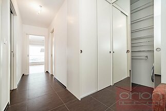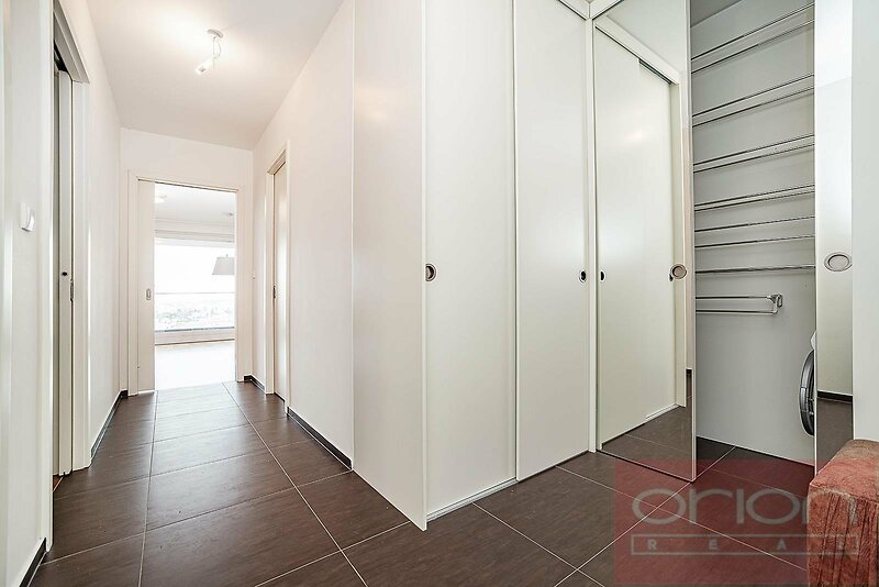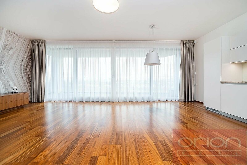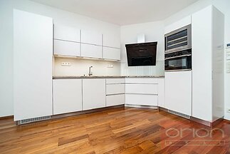 Nabízíme k pronájmu prostorný byt s dispozicí 3+kk (96,5 m² ) s terasou (6 m² ) umístěný v 1. patře moderní rezidence Villa City View v Praze 5 - Smíchov. Byt má bezbariérový přístup a nabízí vstupní chodbu s úložným prostorem, velký obývací pokoj s jídelní částí a kuchyní a se vstupem na terasu (6m²) , odkud je nádherným výhled na město, 2 ložnice, z toho hlavní ložnice má vlastní koupelnu se sprchou a toaletou, dále druhou koupelnu s vanou a toaletou. V ložnicích jsou vestavěné skříně, obývací pokoj je vybaven designovým policovým systémem. Moderní kuchyňská linka je vybavena spotřebiči, varnou deskou Küppersbusch se systémem Vok, lednicí s mrazákem, myčkou a troubou. Na podlahách jsou kvalitní parkety a dlažba. Byt je vybaven venkovními roletami ve všech pokojích, má bezpečnostní dveře, alarm a patří k němu jedno garážové stání v podzemní garáži, jedno venkovní parkovací stání a velký sklep. Dům je situován v klidné lokalitě Prahy 5, nabízí dostatek soukromí a příjemné bydlení. Výborné spojení autem a MHD k obchodnímu centru Anděl, kde je stanice metra a tramvají, do centra města, na letiště Václava Havla, do mezinárodních škol. Volný od 1.3. 2026, prohlídky po dohodě.