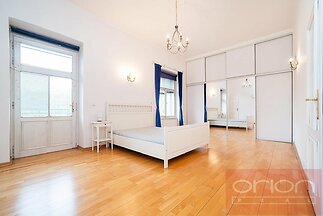Nabízíme k pronájmu prostorný, částečně zařízený byt 3+kk s balkonem ve 3. patře činžovního domu s výtahem ve vyhledávané lokalitě v Praze 2 - Vinohrady pár kroků od náměstí Míru. Byt o celkové ploše 122 m2 nabízí vstupní halu, prostorný obývací pokoj spojený s jídelnou a plně zařízenou kuchyní, 2 ložnice, z nichž jedna má přímý vstup na balkon orientovaný do tichého dvora, koupelnu s vanou, sprchou, umývadlem a toaletou, samostatnou toaletu a komoru. V bytě jsou vysoké stropy, na podlahách parkety a dlažba, plynové topení. Zařízení bytu zahrnuje velké vestavěné skříně v chodbě a v ložnici, kuchyňský stůl se židlemi, postele v ložnicích, TV stolek a TV a sofa. Výborná lokalita, v pěší vzdálenosti se nachází park Riegrovy sady, Vyhledávaná lokalita Praha 2 - Vinohrady poskytuje veškerou občanskou vybavenost a výborné dopravní spojením autem a MHD. Stanice metra a tramvají náměstí Míru a I.P.Pavlova jsou 5 minut pěšky, autem je blízký nájezd na Pražskou magistrálu a navazující dálniční síť. V těsné blízkosti domu jsou obchody, bistra, kavárny, restaurace. Pouhých pár minut pešky je oblíbený park Riegrovy sady. Možnost pronájmu parkovacího stání za extra poplatek. K nastěhování od 1.6. 2026, prohlídky nyní.