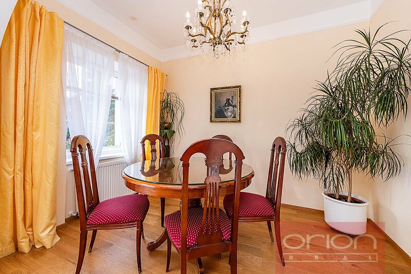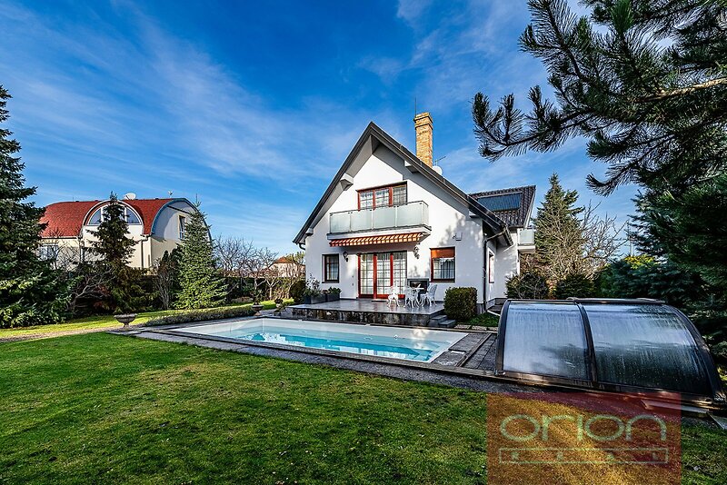 Nabízíme k pronájmu prostorný rodinný dům s dispozicí 7+1 se zahradou a bazénem v klidné oblasti Prahy 6 - Suchdol. Dům o celkové ploše 253 m2 nabízí v přízemí vstupní předsíň, prostorný obývací pokoj s jídelní částí, krbem a přímým vstupem na terasu s bazénem, samostatnou kuchyn se všemi spotřebiči, dvě ložnice, koupelnu, samostatná toaleta pro hosty a technickou místnost. V horním patře je druhý obývací pokoj/herna se vstupem na balkon, dvě ložnice, pracovní kout, koupelnu a úložný prostor. Suterén domu nabízí rozsáhlé úložné prostory, sprchu, toaletu a garáž. Nízkonákladový dům je vybavený úsporným topným systémem se solárními kolektory, součástí vybavení je centrální vysavač, elektrické žaluzie, podlahové topení, parkety, dlažba a koberce. Udržovaná zahrada s ovocnými stromy o velikosti 800 m2 zajišřuje dostatek soukromí i příjemný prostor k relaxaci Dobrá dopravní dostupnost do centra, do mezinárodních škol, na mezinárodní letiště Václava Havla a dálniční síť. V místě je veškerá občanská vybavenost:obchody, restaurace, zdravotnické zařízení, dětská hřiště, mateřské a základní školy. Oblíbená lokalita s dostatkem zeleně, nedaleko přírodní rezervace Údolí Únětického potoka a přírodní rezervace Tiché Údolí.