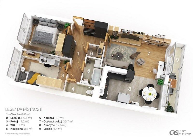 Nabízíme k pronájmu prostorný, světlý byt 3+1 o velikosti 63 m² + lodžie 6,4 m² + komora na patře. Byt se nachází v 4.patře revitalizovaného panelového domu s výtahem. Je orientován jihozápadním a severovýchodním směrem a nabízí soukromí a volný výhled. Z prostorné předsíně se vstupuje do obývacího pokoje se vstupem na lodžii, 2 neprůchozích ložnic, koupelny se sprchovým koutem; WC zvlášť. Výhodou je velké množství úložných prostor a komora na patře, proti bytu. V blízkosti kompletní občanská vybaveností, MŠ, ZŠ, dopravní hřiště, velké množství parků a dětských hřišť, restaurace. Rovněž výborná dostupnost všemi směry (metro Prosek, Střížkov, autobusy, nájezd na Pražský okruh). Nájemné činí 23.000 Kč/měsíc + 4.500 Kč služby (zúčtovatelné). Elektřinu, plyn a internet si hradí nájemce na základě vlastní smlouvy s dodavatelem. Pronajímatel požaduje složení kauce ve výši 46.000 Kč. Při podpisu rezervační smlouvy uhradí nájemce provizi realitní kanceláře ve výši jednoho nájmu + DPH 21%. Byt je k dispozici ihned.