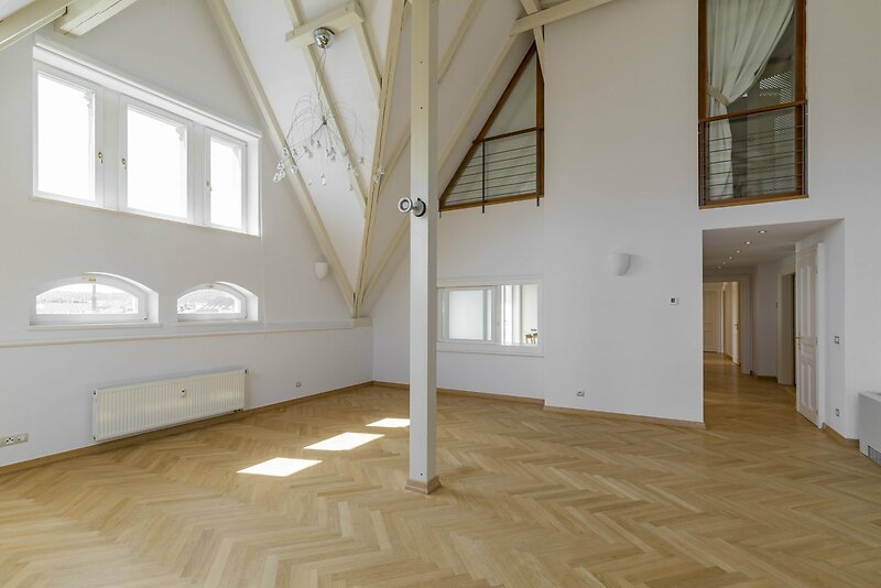 Nabízíme k pronájmu reprezentativní mezonetový byt 5+1 s terasou v 5. a 6. patře renovovaného neorenesančního činžovního domu s výtahem ve vyhledávané lokalitě Prahy 5 na rozhraní Malé Strany a Smíchova. Byt má celkovou plochu 286 m² a nabízí ve spodním patře vstupní předsíň, prostorný obývací pokoj, plně vybavenou kuchyň se spotřebiči (sklokeramická varná deska, trouba, lednice, myčka a mikrovlnná trouba), 1 ložnici s vlastní koupelnou s vanou, sprchou, toaletou a bidetem, šatnou a vstupem na balkon. Další dvě ložnice, obě se vstupem na balkon, 1 koupelnu s vanou, toaletou a bidetem, malou šatnu a komoru. V horním patře je otevřená místnost s možností využití jako ložnice pro hosty nebo herna pro děti, 1 koupelna se sprchou, toaletou a bidetem, prádelna s pračkou a sušičkou a terasa o velikosti 35 m² s pergolou, posezením s dechberoucím výhledem na Petřín a Pražský hrad. Byt je částečně zařízený a k jeho vybavení patří jídelní stůl a židle, postel a vestavěná skříň v ložnici, vybavená šatna, závěsy, regály v koupelně, klimatizace, alarm, videotelefon, bezpečnostní dveře, dřevěné parkety, mramorové podlahy v koupelnách, plynové topení. Na terase je venkovní nábytek a pergola, k rostlinám na terase je zaveden i systém zavlažování. V domě je denní recepce a možnost využít služeb údržbáře. K bytu náleží sklep. Perfektní poloha naproti Petřínským sadům, v docházkové vzdálenosti od Pražského hradu, Karlova mostu, Malostranského náměstí. V okolí domu je veškerá občanská vybavenost : restaurace, kavárny, bistra, obchody, zdravotnická zařízení. Jen pár kroků od Francouzského lycea, stanice tramvaje, metra Anděl a nákupního centra Nový Smíchov. Autem blízký nájezd na Pražský okruh a dálniční síť. Parkovací místo v garážích na zakladači vhodné pro nízká auta s výškou do 150 cm přímo v domě za extra poplatek 3.900 Kč + DPH/měsíc. Pro větší vozy je možné využít parkování v Drtinově ulici za extra poplatek. K bytu patří sklep. K dispozici ihned. Nájemce bytu má možnost stát se za poplatek členem wellness klubu Elliptico v rezidenci Ellipsis v Holečkově ulici.