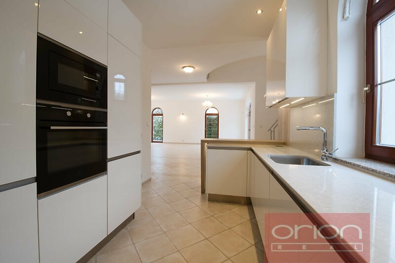 Nabízíme k pronájmu reprezentativní vilu 5+kk ve vyhledávané lokalitě v Praze 6 - Nebušice. Dům je součástí uzavřeného rezidenčního komplexu Villas Šárka v těsném sousedství mezinárodní školy ISP. Dům prošel v roce 2026 částečnou rekonstrukcí. Celková obytná plocha domu 243 m² nabízí v přízemí vstupní halu se šatnou, prostorný obývací pokoj s krbem a vstupem na terasu, plně zařízenou kuchyň, prádelnu s pračkou a sušičkou, toaletu a komoru. V 1. patře jsou 4 ložnice (2 ložnice mají vlastní koupelnu), třetí koupelna je s rohovou vanou, bidetem a toaletou, samostatná toaleta a vstup na terasu. K domu patří udržovaná zahrada o velikosti 328 m² s vyhřívaným bazénem s podvodním osvětlením a protiproudem. K vybavení domu patří klimatizace, podlahové vytápění, plynový kotel, zabezpečovací systém s připojením na pult centrální ochrany, prostorná terasa s elektricky ovládanou markýzou, garáž pro 2 auta. Oblíbená lokalita Nebušice, v blízkém okolí je základní i mateřská škola, zdravotní středisko, obchody, sportovní hala a tenisové centrum, přírodní rezervace Divoká Šárka. Veškerou další infrastrukturu poskytuje nedaleké centrum Dejvic. Dobrá dopravní dostupnost MHD a autem do centra i na letiště. Pouhých 8 minut jízdy autem ke stanici metra a tramvají Bořislavka.