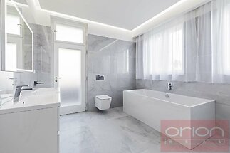 Nabízíme k pronájmu světlý nezařízený byt 4+1 s balkonem o velikosti 14 m2 v přízemí samostatně stojící vily v krásné lokalitě Prahy 6 - Střešovice. Nezařízený byt o velikosti 142 m2 nabízí vstupní chodbu, prostorný obývací pokoj, plně vybavenou kuchyň, 3 ložnice z toho 2 ložnice s vlastní koupelnou, samostatnou toaletu, komoru a šatnu. Součástí vybavení je pračka, vestavěné skříně, vinotéka. K užívání je společná zahrada. V nájmu je zahrnuto jedno parkovací stání. Lokalita s veškerou občanskou vybaveností a výbornou dopravní dostupností MHD a autem do centra města stejně tak na městský okruh a letiště Václava Havla. V pěší vzdálenosti zastávky autobusů a tramvají. V blízkém okolí mezinárodní školy, obchodní centra, parky a sportoviště pro volnočasové aktivity.