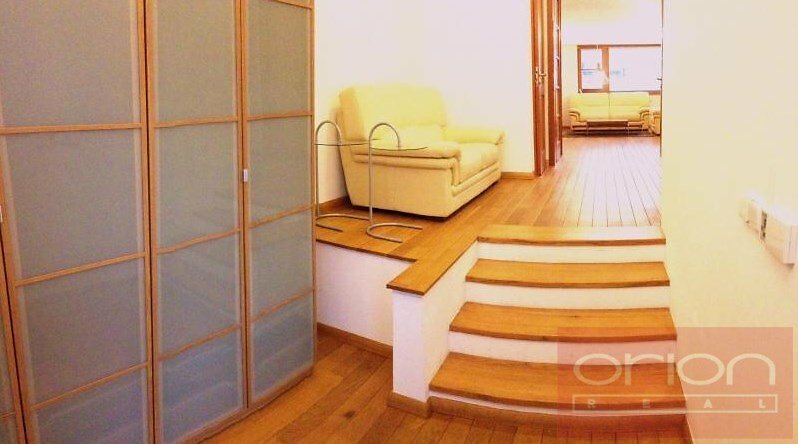 Nabízíme k pronájmu světý byt 3+kk s terasou ve 2. patře čtyřpatrové vily v klidné rezidenční čtvrti Prahy 5-Jinonice, v blízkosti chráněného přírodního parku Vidoule. Byt s celkovou plochou 98 m2 nabízí obývací pokoj s krbem a s plně vybavenou kuchyní se vstupem na terasu o velikosti 35 m2 orientovanou na jih s krásným výhledem, 2 ložnice, koupelnu s vanou a toaletou a samostatnou toaletu. Byt je částečně zařízený, k vybavení patří masivní podlahy z dubového dřeva, dveře s bezpečnostním sklem, dlažba z Marazzi kamene, videotelefon a alarm. Lokalita s výbornou dopravní dostupností a veškerou občanskou vybaveností. Nejbližší nákupní centrum Galerie Nové Butovice je cca 10 minut pěší chůze, stejně jako Německá mezinárodní škola. Francouzské lyceum je 15 minut autem. Stanice metra a autobusů Nové Butovice je vzdálena 5 minut chůze od vily. K dispozici je venkovní oplocené parkování pro jedno auto, které je zahrnuto v ceně nájmu. Byt může být po dohodě plně zařízen nábytkem.