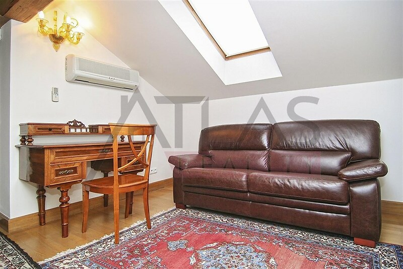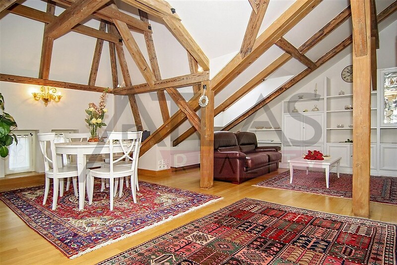 Nabízíme k pronájmu velkolepý, nadstandardně zařízený podkrovní mezonetový byt 3+kk (dvě ložnice a malý kout na práci na počítači s pohovkou), 128 m2 s terasou s posezením v 5. a 6. patře rekonstruovaného činžovního domu v centru Prahy. Byt je zařízen novým starožitným nábytek, v bytě jsou viditelné dřevěné trámy, která dávají bytu jedinečnou atmosféru, v obývacím prostoru velmi velký dekorativní krb. Dispozice dolního podlaží bytu: vstupní hala, obývací pokoj s krbem, jídelní částí, vstupem na terasu a s otevřenou plně vybavenou kuchyní se spotřebiči (sporák, lednice s mrazákem a myčka), jedna ložnice a velká koupelna (s vanou, toaletou, umyvadlem a bidetem). Na galerii vedoucí z obývacího pokoje je druhá ložnice a malý kout na práci na počítači s pohovkou. K dispozici jsou klimatizace, pračka, lednička, myčka, video, hifi, TV, satelit. Na podlaze parkety a dlažba. Vynikající dopravní spojení: stanice metra B Náměstí Republiky a tramvaje č. 5, 8, 24, 26. Budova se nachází v centru města, v klidné ulici, pouze 2 minuty chůze od zastávek tramvají, stanice metra na Náměstí Republiky a obchodního centra Palladium, 10 minut chůze na Václavské náměstí, blízko supermarketu Billa, obchodů, kaváren, barů a restaurací. Veškerá občanská vybavenost je v místě. Nájemnicí bytů mohou využívat bazén na zahradě v Italské ulici. Kauce: 2 nájmy. Nájemné: EUR 2.600 + služby celkem EUR 550 + provize pro realitní kancelář. Energetická náročnost budovy: G (nebyla sdělena vlastníkem nemovitosti). Pouze dlouhodobý pronájem. Volný od 1.2.2026