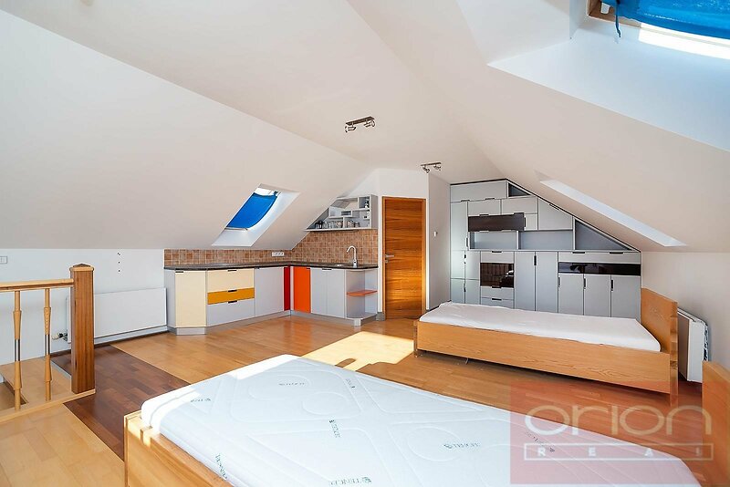 Nabízíme k pronájmu velmi hezký, nezařízený rodinný dům 6+1 (250 m² ) se zahradou a terasou v Praze 5 - Řeporyje. Tento samostatně stojící dům se nachází v zástavbě rodinných domů, v okolí je veškerá občanská vybavenost. Dům je hezky prostorný a nabízí v přízemí vstupní halu s vestavěnými skříněmi, velký reprezentativní obývací pokoj s krbem a se vstupem na terasu a zahradu, plně vybavenou kuchyň s jídelnou, 1 ložnici, koupelnu s toaletou a technickou místnost. V patře jsou 3 ložnice, koupelna s toaletou (vana, sprchový kout), obytná galerie. Dále je zde samostatný pokoj s kuchyňským koutem a s koupelnou s toaletou. K vybavení domu patří dřevěné podlahy a dlažba, plynové topení, alarm a garáž pro 2 auta. Na zahradě o velikosti 700 m² je venkovní krb a velký zahradní domek. Zahrada poskytuje dostatek soukromí. V místě je veškerá občanská vybavenost: škola, školka, v okolí jsou obchody Billa, Lidl, MAKRO. Dobré dopravní spojení MHD, vlakem a autem do centra, ke stanici metra, do nákupního centra Nové Butovice a Zličín a na letiště Václava Havla. Snadná dostupnost na nájezd na Pražský okruh. Cena na vyžádání.