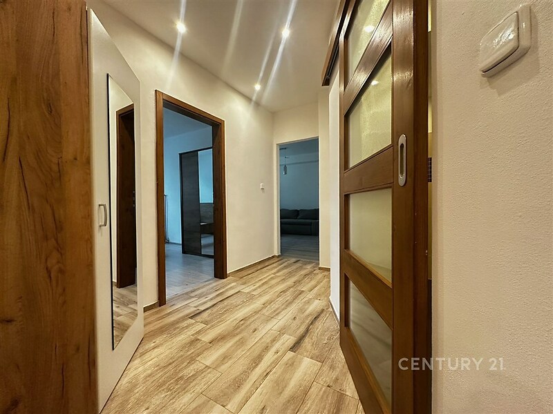Nabízíme k pronájmu velmi kvalitně rekonstruovaný útulný byt 2+1 s balkonem o rozloze 62 m², který se nachází ve 2. patře udržovaného panelového domu v Bezručově ulici ve Frýdlantu. Byt je k dispozici ihned. Byt má praktické uspořádání tvoří ho velká předsíň, obývací pokoj, na který navazuje kompletně vybavená kuchyň, neprůchozí ložnice, koupelna s WC a velmi praktická komora. Na podlaze je položena kvalitní dlažba a plovoucí podlahy, které podtrhují moderní vzhled bytu. Vytápění je zajištěno dálkovým ústředním topením. Z obývacího pokoje je možný přístup na balkon. K dispozici je menší sklep, v domě je instalovaný výtah. Vytápění je zajištěno dálkovým ústředním topením. Parkování přímo na ulici před domem. V těsné blízkosti naleznete nejen všechny potřebné služby – obchody, školy, lékařské zařízení, ale i příjemné parky a zeleň pro odpočinek a volnočasové aktivity. Cena pronájmu je nastavena tak, aby odrážela kvalitu a lokalitu a je stanovena následovně: nájem bytu měsíčně je 11.000, Kč, zálohy na služby 7.000, Kč + el. energie měsíčně. Jistina při podpisu nájemní smlouvy dva měsíční nájmy t.j. 22.000, Kč, provize RK 11.000, Kč. Vhodné maximálně pro 2 dospělé plus dítě. V případě zájmu o tuto nemovitost mě neváhejte kontaktovat.