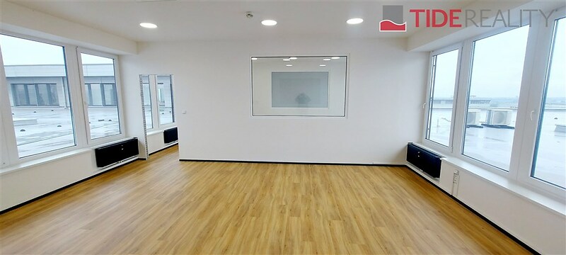 Nabízíme k pronájmu velmi světlé a prostorné kancelářské prostory v areálu v Modleticích. Kanceláře jsou po kompletní rekonstrukci a nachází se ve 3.patře s výtahem. Celková vnitřní plocha kanceláří je 147 m2 a je členěna na vstupní kancelář s malou, plně vybavenou kuchyňkou, 2 x WC, další 2 kanceláře a reprezentativní zasedací místnost ( kancelář) a malý oddělený archív. Všude jsou nové vinylové podlahy, klimatizace, venkovní elektricky ovládané žaluzie. Výhled přes střechu budovy do okolní krajiny. Součástí nájmu jsou 2 parkovací místa uvnitř areálu v ceně. Nájemné činní 43.400, Kč / měsíc + zálohy na služby 9.000, Kč / měsíc. V případě potřeby je možné si v přízemí pronajmout velmi prostorný sklad s příslušenstvím a malou kuchyňkou ( cca 100 m2), které však lze využít jako další kancelář s vlastním zázemím. Nájemné za tento skladový prostor činní 20.500, Kč / měsíc + záloha na služby 6.000, Kč. Oba prostory jsou volné ihned