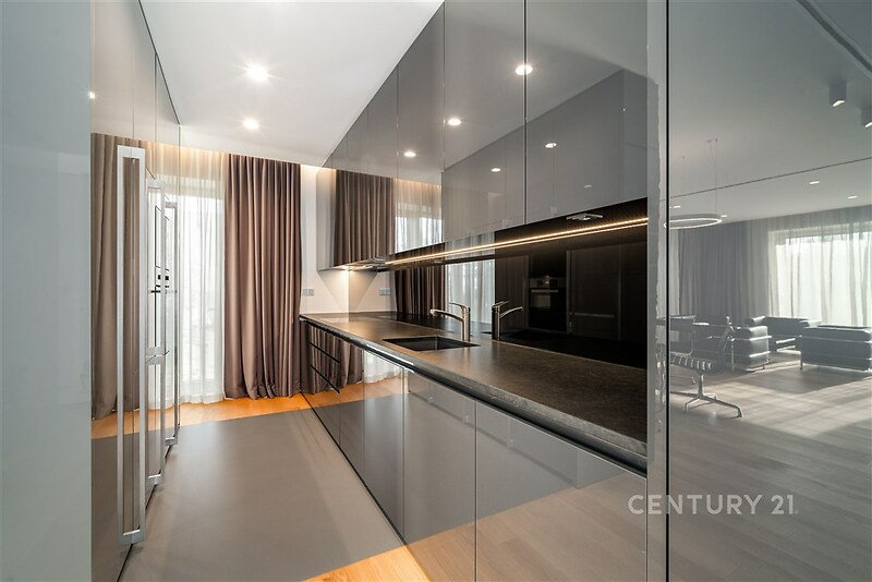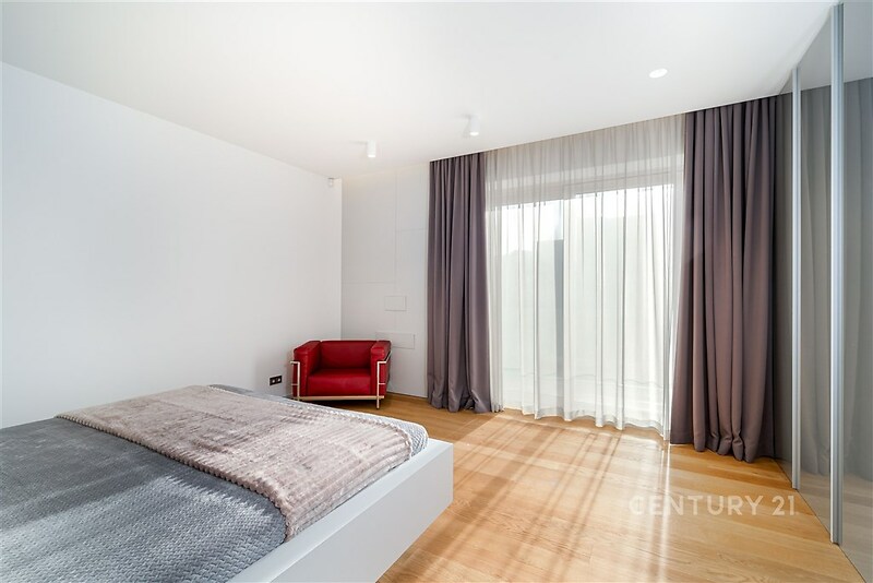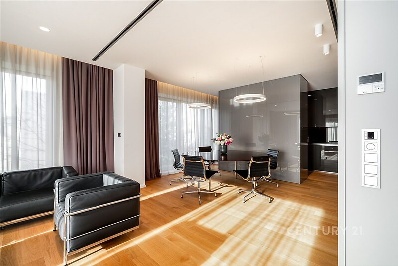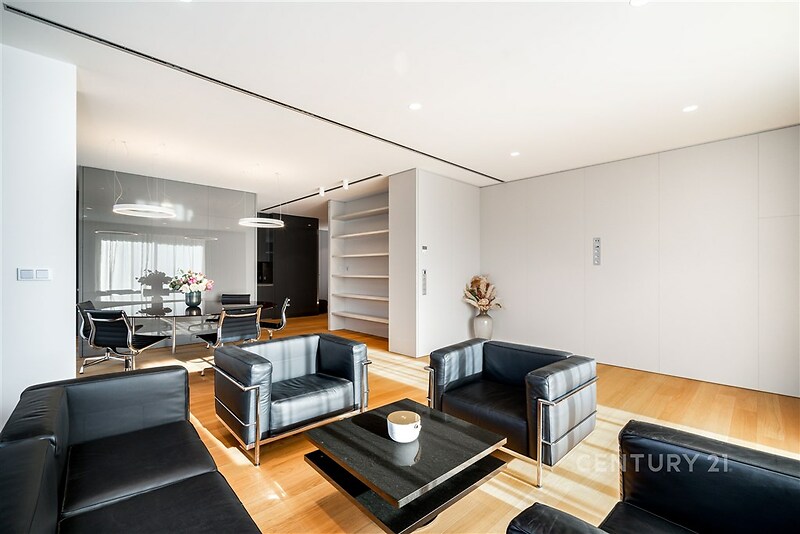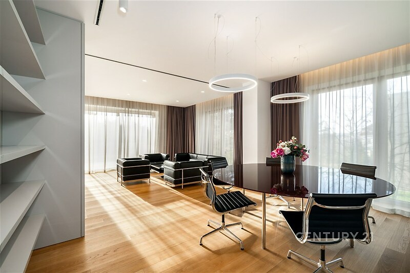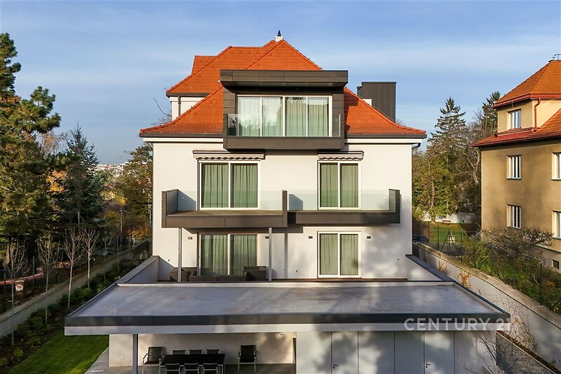 Nabízíme k pronájmu výjimečný byt o dispozici 3+kk se dvěma balkony, který se nachází ve 3. nadzemním podlaží zrekonstruované vily v jedné z nejžádanějších rezidenčních lokalit Prahy – Podolí. Byt nabízí velkorysé a vzdušné bydlení s důrazem na světlo, soukromí a nadčasový design. Interiér bytu byl navržen renomovaným českým architektem Radanem Hubičkou, který se podílel na koncepci prostoru, materiálovém řešení i vybavení. Typickým prvkem je důmyslně řešený úložný prostor, který je elegantně integrován do interiéru a působí čistým, minimalistickým dojmem. Soukromí, komfort, funkčnost a nadčasový design jsou hlavními atributy tohoto bydlení. Dispozice a řešení bytu: Vstup do bytu tvoří prostorné zádveří s vestavěnými úložnými systémy, které jsou citlivě zapracované do stěn a přispívají k celkové čistotě prostoru. Na zádveří navazuje hlavní obytná část, která propojuje obývací pokoj, jídelnu a kuchyni. Prostor je díky velkoformátovým oknům mimořádně světlý a vzdušný. Z obývacího pokoje je přímý vstup na hlavní balkon o velikosti 21,3 m², který je sdílen také s hlavní ložnicí a nabízí příjemný prostor pro relaxaci i venkovní posezení. Kuchyň je navržena jako samostatně vnímaný celek – je částečně oddělena subtilní stěnou, která zachovává otevřenost prostoru a zároveň eliminuje přímý pohled na pracovní část kuchyně z obývací zóny. Samozřejmostí jsou prémiové spotřebiče značky Miele. Hlavní ložnice nabízí maximální komfort a soukromí – disponuje vlastní šatnou, ensuite koupelnou a přímým vstupem na hlavní balkon. Druhá ložnice je situována v klidové části bytu a má přístup na druhý balkon o velikosti 5 m², stejně jako koupelna, která je přístupná ze zádveří. Součástí bytu je také samostatná místnost pro praní a úklid, vybavená pračkou a sušičkou, která zároveň poskytuje praktický úložný prostor. K bytu náleží garážové stání. Rezidenti mohou využívat také společnou zahradu o výměře 1 099 m², která nabízí prostor pro relaxaci i společenská setkání, včetně venkovního posezení, grilovací zóny a venkovní kuchyně. Podolí patří mezi nejvyhledávanější vilové čtvrti Prahy, nabízí klidné bydlení v zeleni a zároveň výbornou dostupnost do centra města. Tento byt je ideální pro klienty hledající světlé a reprezentativní bydlení s důrazem na architekturu, soukromí a kvalitní design.
