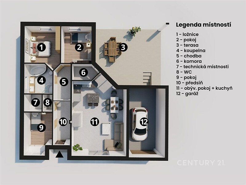 Nabízíme ke koupi moderní novostavbu bungalovu 4+kk s garáží a zahradou v obci vzdálené jen 7 min od Kyjova, okr. Hodonín. Dům je aktuálně v pokročilé fázi výstavby s plánovanou kolaudací na jaře 2026. Základní informace: Dispozice: 4+kk Užitná plocha: 94 m² Podlahová plocha: 118 m² Plocha pozemku: 600 m² Konstrukce: zděná Okna a dveře: plastová s izolačním trojsklem Energetická náročnost: třída B (74 kWh/m²/rok) Vybavení a technické parametry: Elektrické podlahové vytápění, digitální termostat v každé místnosti vč. garáže Ohřev vody elektrickým bojlerem Klimatizace Daikin k chlazení i přitápění Příprava na krbová kamna i fotovoltaickou elektrárnu (FVE) Půdní prostor 24 m² přístupný stahovacími schody – ideální pro skladování Inženýrské sítě: elektřina, obecní vodovod, kanalizace, optický internet, bez plynu Retenční nádrž 10 m3 k zalévání či závlaze Venkovní elektrické žaluzie Rodinný dům se nachází v obci Nenkovice, která nabízí veškerou základní občanskou vybavenost: MŠ a ZŠ (1. i 2. stupeň, zdravotní středisko, kulturní sál, sportoviště, dětská hřiště, obchod s potravinami, pohostinství. Širší nabídka služeb je k dispozici v Kyjově (cca 9 km). Termín dokončení: červenec 2026 Dopravní dostupnost: Kyjov: 7 min autem / 15 min autobusem Hodonín: cca 25 min autem Brno: cca 45 min autem (autobusové spojení přes Kyjov) Dálnice D2 (Břeclav/Hustopeče): cca 35 min Tento dům je ideální volbou pro rodiny hledající klidné bydlení s výbornou dostupností do větších měst. S financováním vám rádi pomůžeme.