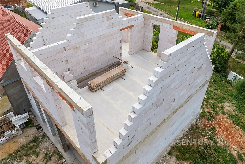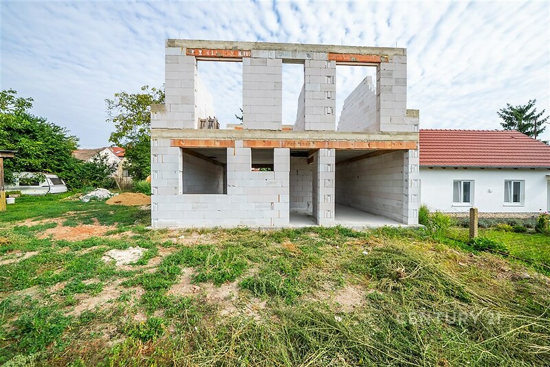 Nabízíme ke koupi novostavbu rodinného domu ve velmi klidné části města Miroslavi na Znojemsku. Dům je právě ve fázi hrubé stavby a bude dokončen na klíč, tedy kompletně připravený k vašemu nastěhování bez nutnosti dalších investic. Jedná se o dvoupatrový zděný dům se sedlovou střechou a dispozicí 4+kk. V přízemí se nachází vstupní prostor s přístupen na toaletu, do garáže, spižírny a především do obývacího pokoje s kuchyňským koutem. Z obývacího pokoje bude zajištěn bezprostřední přístup na zahradu prostřednictvím velkého francouzského okna. V patře se nachází tři ložnice, šatna a dvě koupelny z nichž jedna bude přístupná přímo z ložnice. V domě jsou celkem dvě koupelny a dvě WC. K praktickému zázemí patří také sklad za garáží. V celém domě bude podlahové vytápění, které zajistí příjemné teplo a nízké provozní náklady. Na menší, ale snadno udržovatelné zahradě o výměře 102 m² je umístěna studna, kterou můžete využít pro zalévání i běžný provoz. Dům stojí ve velmi tiché a klidné ulici, kde je dostatek soukromí, přesto jen pár minut chůze od centra Miroslavi. V místě je kompletní občanská vybavenost – škola, školka, obchody, restaurace i zdravotní středisko. Do Znojma se pohodlně dostanete autem za 25 minut, autobusem za 30 minut, do Brna pak za bezmála hodinu. Tento dům je ideální pro rodinu, která hledá klidné bydlení s výbornou dostupností a možností nastěhovat se do zcela nového, moderního domova.