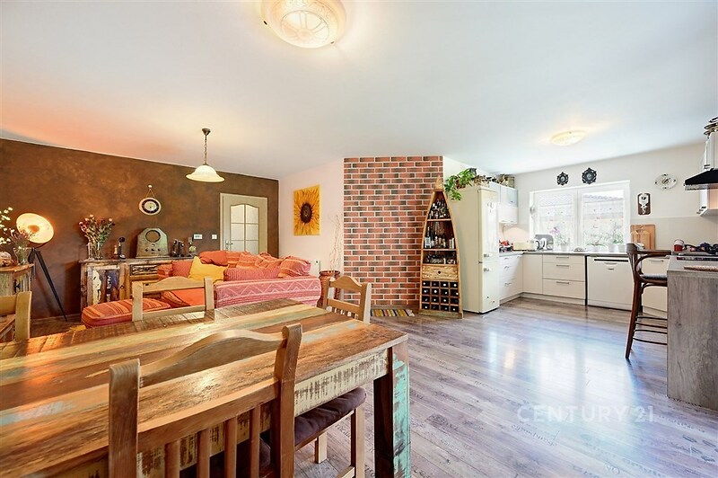 Nabízíme na prodej krásný dům o dispozici 5+kk v Hlubočince. Jedná se o levou polovinu dvojdomu postaveného z kvalitních cihel Porotherm. Dům je navíc zateplen. Tvoří ho 2 podlaží. V přízemí najdeme vstup, technickou místnost, koupelnu s WC, pokoj pro hosty, velký obývací pokoj propojený s kuchyňským koutem a výstupem na jižně orientovanou terasu, na kterou navazuje pěstěná a rovinatá zahrada. V 1. patře se nacházejí 2 samostatné ložnice a další prostorný pokoj a druhá koupelna. Dům je skvěle udržovaný a můžete se do něj po koupi ihned nastěhovat bez dalších úprav. Je napojen na obecní vodovod a kanalizaci, vytápění je vyřešeno elektrokotlem Protherm. V obývacím pokoji si navíc můžete zatopit v krbových kamnech. Náklady na provoz domu jsou velmi nízké, necelé 3 tisíce Kč měsíčně, včetně vody a elektřiny. Je zde také jímka na dešťovou vodu. Na pozemku pohodlně zaparkujete až 3 osobní auta. V obci je restaurace, sportovní hala, hned za hranicí obce Lidl, další obchody najdeme v nedaleké Jesenici nebo Kamenici. Autem se do Prahy dostanete za 15 min, pravidelné spojení PID na metro C Budějovická. Doporučujeme prohlídku.