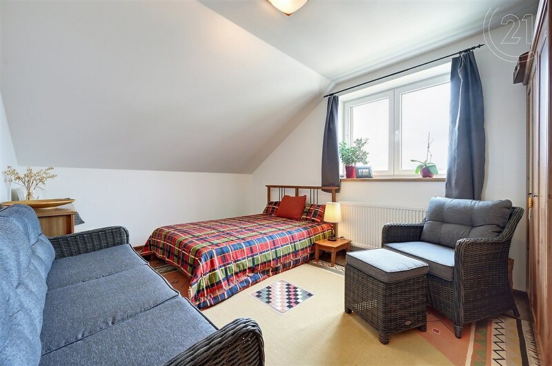 Nabízíme na prodej krásný dům o dispozici 5+kk v Hlubočince. Jedná se o levou polovinu dvojdomu postaveného z kvalitních cihel Porotherm. Dům je navíc zateplen. Tvoří ho 2 podlaží. V přízemí najdeme vstup, technickou místnost, koupelnu s WC, pokoj pro hosty, velký obývací pokoj propojený s kuchyňským koutem a výstupem na jižně orientovanou terasu, na kterou navazuje pěstěná a rovinatá zahrada. V 1. patře se nacházejí 2 samostatné ložnice a další prostorný pokoj a druhá koupelna. Dům je skvěle udržovaný a můžete se do něj po koupi ihned nastěhovat bez dalších úprav. Je napojen na obecní vodovod a kanalizaci, vytápění je vyřešeno elektrokotlem Protherm. V obývacím pokoji si navíc můžete zatopit v krbových kamnech. Náklady na provoz domu jsou velmi nízké, necelé 3 tisíce Kč měsíčně, včetně vody a elektřiny. Je zde také jímka na dešťovou vodu. Na pozemku pohodlně zaparkujete až 3 osobní auta. V obci je restaurace, sportovní hala, hned za hranicí obce Lidl, další obchody najdeme v nedaleké Jesenici nebo Kamenici. Autem se do Prahy dostanete za 15 min, pravidelné spojení PID na metro C Budějovická. Doporučujeme prohlídku.